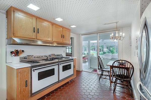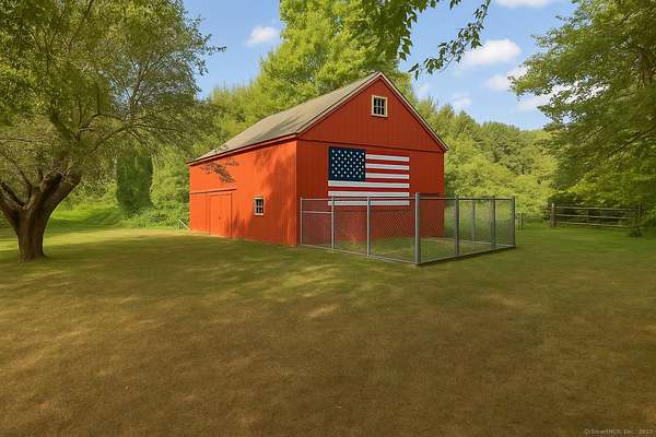 The Nathaniel Parks House circa 1706. Originally built in Guilford, CT, and painstakingly relocated to Woodbridge in 1934. This 5 Br, 3.5 bath, retains all of its original character, including wide plank floors, hand-hewn beams, and a striking double-leaf entry framed by fluted pillars and a pedimented gable. Thoughtful rear additions, including a gambrel wing with garage, were added during the move. Barn-style garage doors and a welcoming covered breezeway connect the main home to an additional wing. Inside, a fieldstone fireplace serves as the stunning focal point of the living area, complemented by exposed wooden beams that enhance the home's historic charm. The eat-in kitchen opens to a sunlit family room with soaring ceilings, four oversized skylights, and panoramic views overlooking the serene backyard. The primary suite features a full bath with a whirlpool jetted tub. Step outside to a brick patio overlooking 7.7 tranquil acres and a classic barn-perfect for storage. Mature trees, lush landscaping, and a private setting create a picturesque environment. Large windows and a spacious layout provide generous natural light, multiple gathering spaces, and flexible living options-ideal for entertaining or quiet enjoyment. Modern comforts such as central air, natural gas, and public water blend seamlessly with the home's antique appeal. A rare opportunity to own a historic Connecticut treasure full of character, warmth and elegance, in central Woodbridge, close to Town.