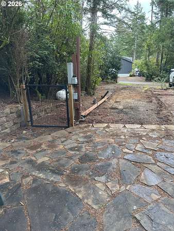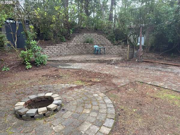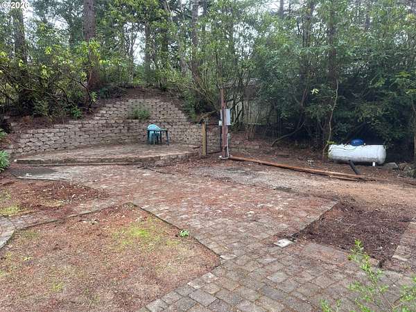 Welcome to your ideal Oregon Coast retreat! This charming property offers a perfect blend of outdoor relaxation and comfort, making it a great home base for your coastal adventures. The property features two outdoor entertainment areas: In the backyard, enjoy a patio adorned with custom retaining walls and slate pavers, while the side yard boasts a custom fire pit surrounded by concrete pavers - perfect for cozy evenings or gatherings. This lot is ready for your RV with hookups on site. Approximate current RV space is 45' deep x 12' wide. A 120-gallon propane tank is on the premises to service a trailer and BBQ's. Storage is abundant with a new 7x7 shed and a remodeled 7x8 bunkhouse/workshop that includes electricity, perfect for a workshop, project space, or whatever you can imagine. The gated community offers a range of amenities for a true sense of community living including a clubhouse, pool, laundry facilities, community garden area, and an exercise room.
