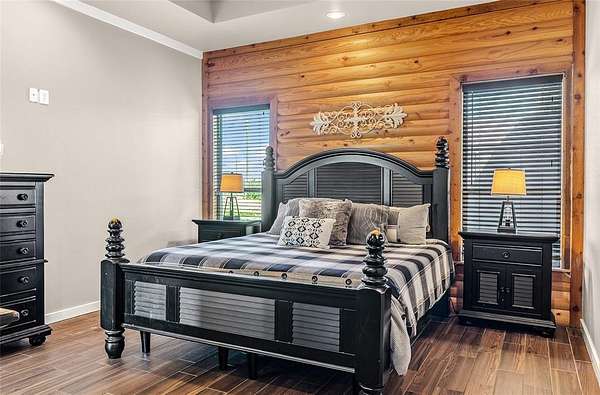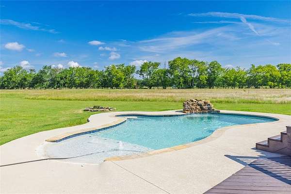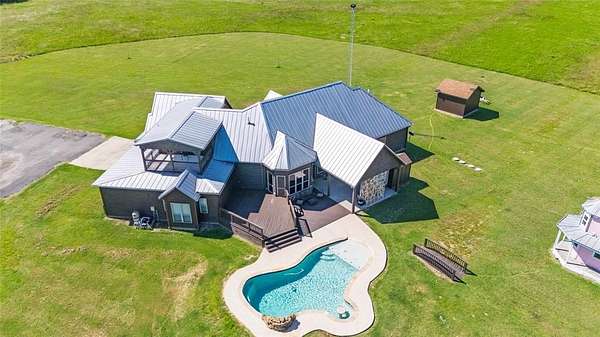 Country life awaits you with this gorgeous home sitting on 9 acres in Cumby, TX just one hour from Dallas! Upon entering the home you're welcomed by a large open floorplan including living, dining, and kitchen featuring huge windows overlooking an inground pool. Amenities include granite countertops, porcelain flooring, log interior walls, gas fireplaces, and more. The kitchen has a large breakfast bar, copper sink, gas stove, and walk-in pantry. Separate utility and half-bath between 2-car garage and kitchen make the perfect mud room. A spacious master suite has a huge walk-in closet, split vanities, and beautiful stand-in shower. This split-bedroom layout has two more bedrooms with walk-in closets and full bath in between. A large flex room upstairs could be a fourth bedroom, office, craft room, or game room, and includes a half-bath and a balcony overlooking the property. Land is in Ag use as a hay meadow. Lots of space to roam so bring those four wheelets and ATV's! Enjoy the beautiful backyard with the pool, deck and outdoor living space and for the kids there is a two-story playhouse with heat and AC!