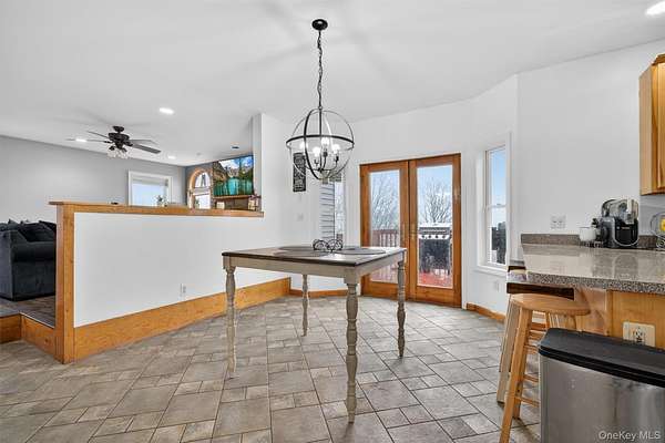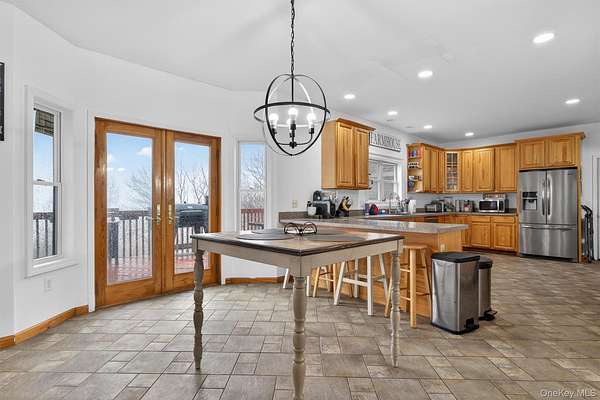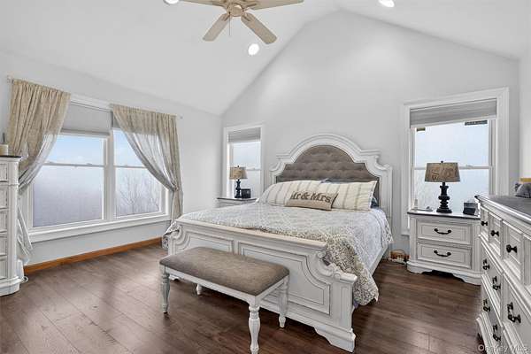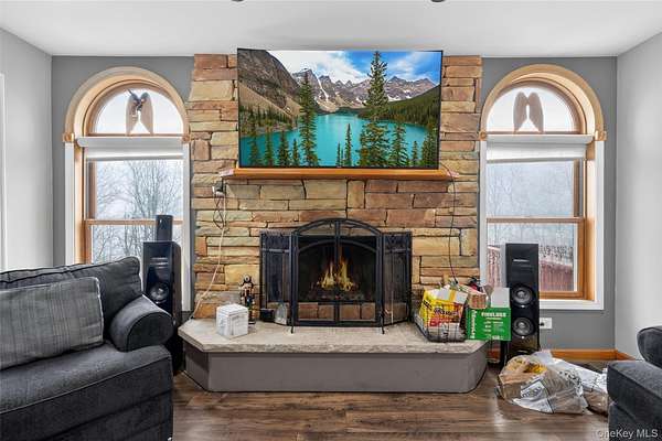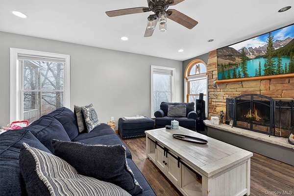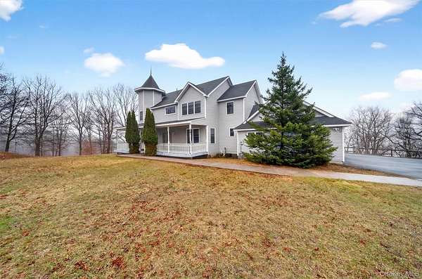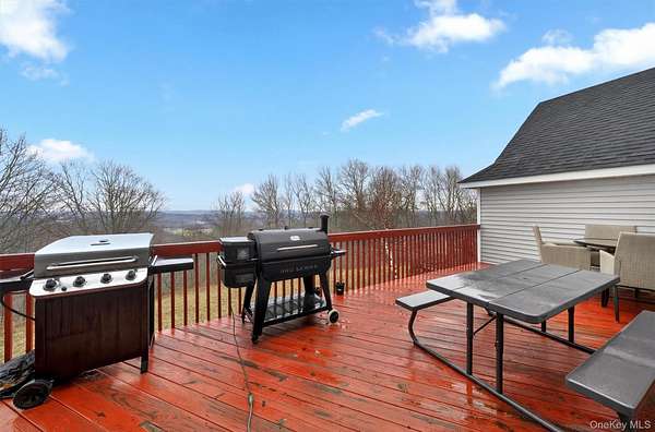 Perched in one of Greenville's most scenic and upscale subdivisions, this stunning contemporary colonial offers breathtaking panoramic mountain views surrounded by nature and privacy. As you arrive, the setting immediately stands out with its peaceful mountain atmosphere and beautiful surroundings. This spacious 3,447 square foot home features 5 bedrooms, 2 full baths, and 2 half baths, along with two fireplaces that add warmth and character. The large eat-in kitchen captures beautiful easterly morning light and flows into the home's main living areas, including a family room, dining room, and a flexible main-level room perfect for a home office, hobby space, or potential first-floor bedroom. Hardwood floors and stainless steel appliances further enhance the home's appeal. The finished basement provides additional living space, while the attached 3-car garage offers ample parking and storage. A standout feature is the additional 1,200 square foot exterior barn/garage, ideal for a home office, car or boat enthusiast, workshop, or countless other uses. Recent updates include a well pump installed 3 years ago, new siding and windows with built-in blinds completed 4 years ago, and a driveway paved 4 years ago. The solar panels are fully paid off, offering long-term energy savings. Conveniently located under a mile to Route 84 and just minutes from shopping, hiking, and tubing along the Delaware River, this property offers both convenience and a peaceful mountain retreat. The views alone make this home a must see to fully appreciate.