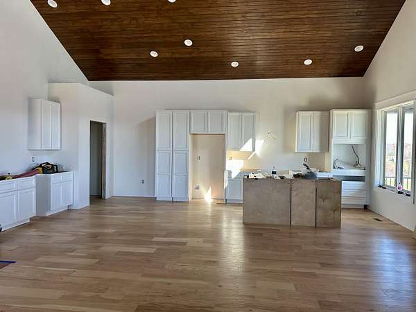 Beautiful New Barndominium nearing completion in Pittsburg Landing on 5.57 acres. Pittsburg Landing is London's newest acreage development located just 3 miles from North Laurel High School. This huge home hosts 3474 square feet living space plus over 1900 sf garage. Room for motorhome and 2 cars and more. Garage is 50 deep by 42 wide. This beautiful build has huge great room with wood vaulted ceiling and fireplace. Soaring ceiling 19 ft with 8 ft front double doors. Open floor plan includes kitchen/dining with lots of beautiful white cabinetry, island bar with granite countertops. Coffee bar and wine fridge. Home has 4 bedrooms and 3 baths. Three bedrooms on main level with one on upper level. Upper level bedroom is 24.6 x 16 with ensuite or nursery area 16 x 9. Storage areas are abundant. Huge wrap around porch with expansive views of rolling hillsides and nature. Build completion date in January.