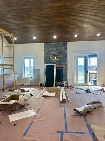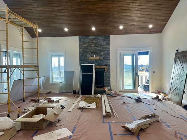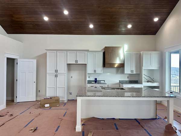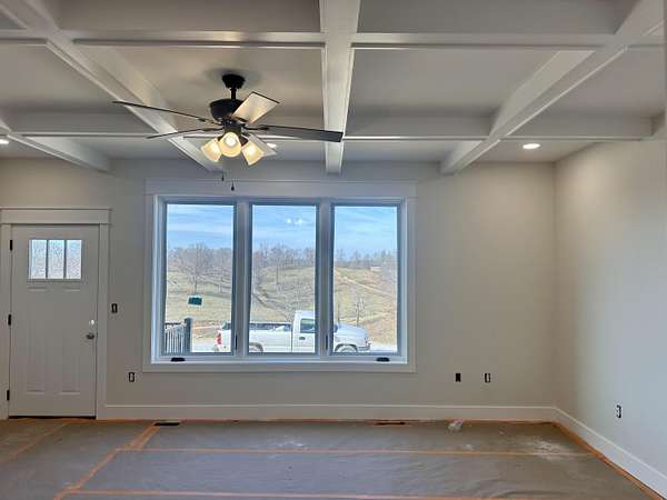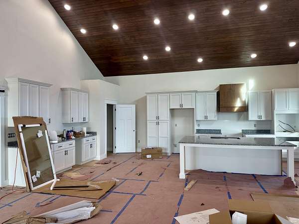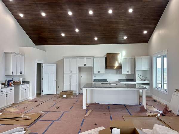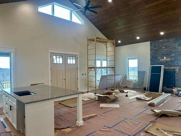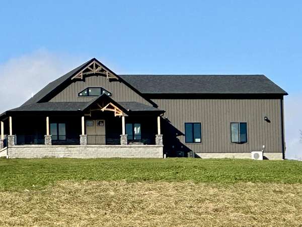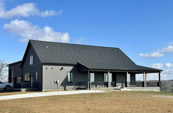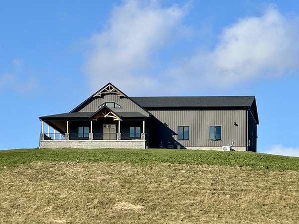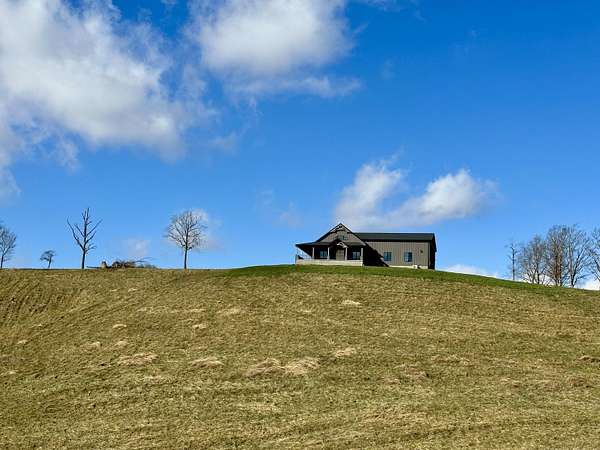 Beautiful New Barndominium nearing completion in Pittsburg Landing on 5.57 acres. Pittsburg Landing is London's newest acreage development located just 3 miles from North Laurel High School. This huge home hosts 3474 square feet living space plus over 1900 sf garage. Room for motorhome and 2 cars and more. Garage is 50 deep by 42 wide. This beautiful build has huge great room with wood vaulted ceiling and fireplace. Soaring ceiling 19 ft with 8 ft front double doors. Open floor plan includes kitchen/dining with lots of beautiful white cabinetry, island bar with granite countertops.Home has 4 bedrooms and 3 baths. Primary Bedroom is on main level with coffered ceiling, nice walk in closet and attached ensuite bathroom with gorgeous walk in shower.Three bedrooms on main level with one on upper level. Upper level bedroom is 24.6 x 16 with ensuite or nursery area 16 x 9. Storage areas are abundant. Huge wrap around porch with expansive views of rolling hillsides and nature. Build completion date in January.