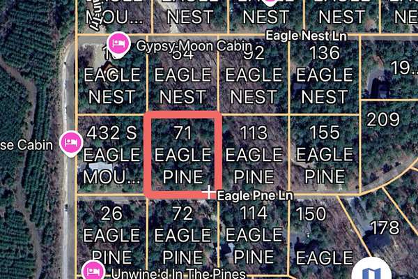 Embrace tranquility at 71 Eagle Pine, a 1.3-acre haven within the coveted Eagle Mountain Phase 4. An ancient walking trail cuts through mature pines and lush foliage, where deer thrive, offering a peaceful escape. Part of a unique square of connecting lots- alongside 92 Eagle Nest, 54 Eagle Nest, and 113 Eagle Pine- this property presents an exceptional prospect to design 'sister' rentals that cater to solo or group stays, or to establish a family compound with neighboring lots for friends and kin, blending privacy with shared joy.