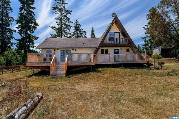 HUGE PRICE REDUCTION on this 2.5 acre mini farm! Conveniently located between Sequim and PA, this move-in ready 3 bed, 2 bath home is open, airy and bright. Huge living room is perfect blend of spacious, comfort and cozy. Open concept kitchen with breakfast bar. Vaulted ceilings on the main floor lead up to the loft area bedroom with its own private balcony! Primary bedroom has walk in closet and private entrance to spacious back deck. Wood stove in living room to keep everything warm and toasty in the cold months. New front and back decks make for expanded entertaining areas. Tons of space for gardening and/or animals. Sitting on approximately 2.5 acres with a large pasture area and pond, it could be a perfect mini-farm. No HOA or CC&R's.