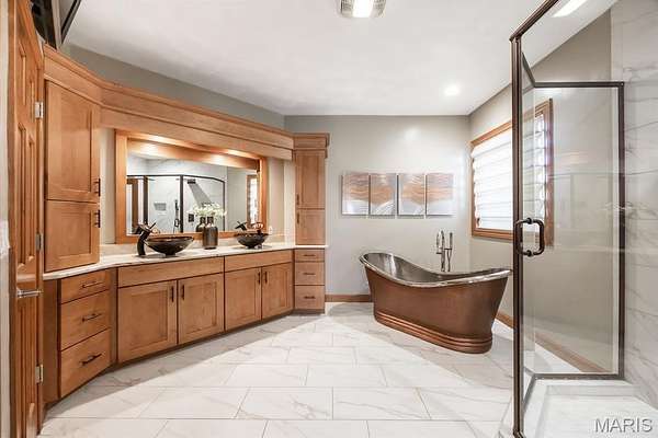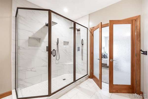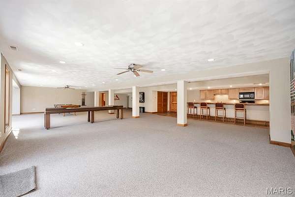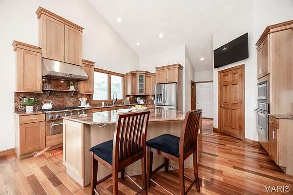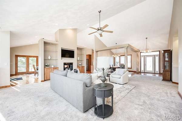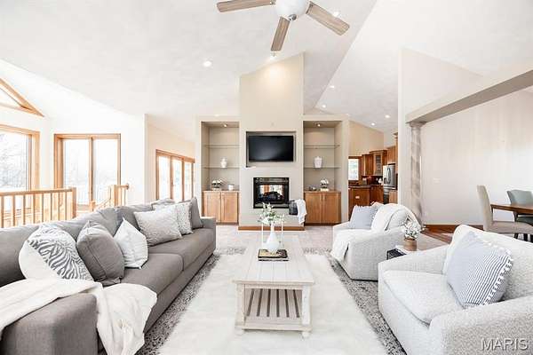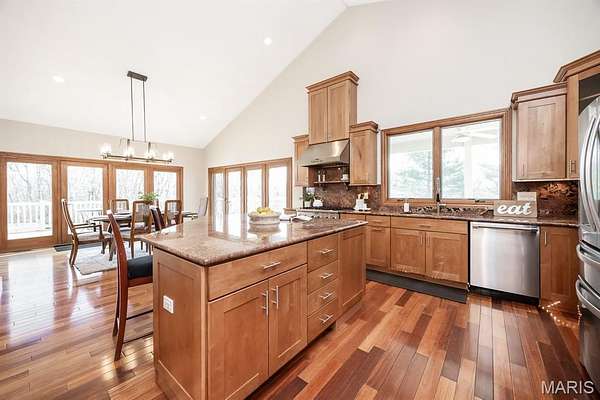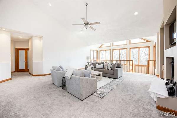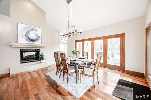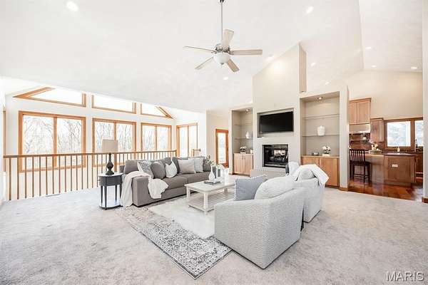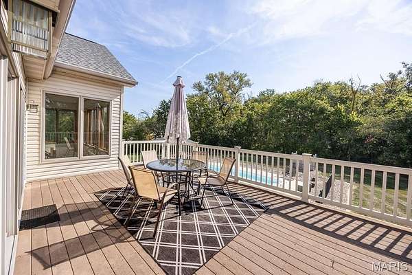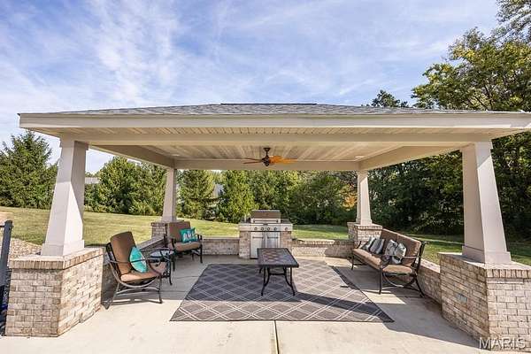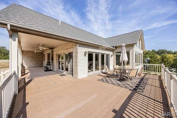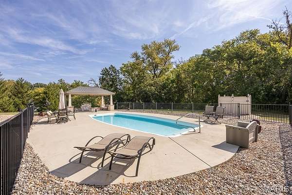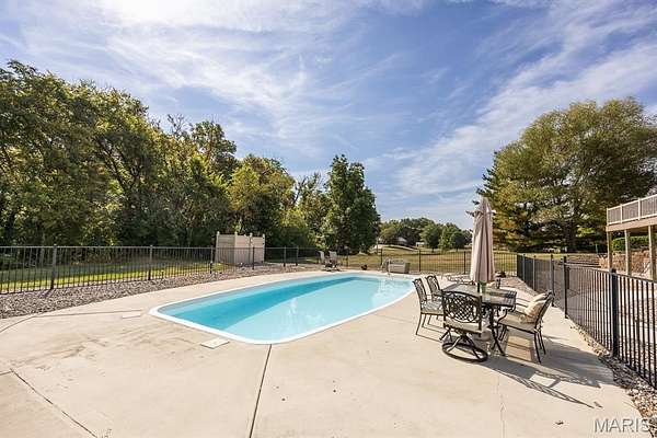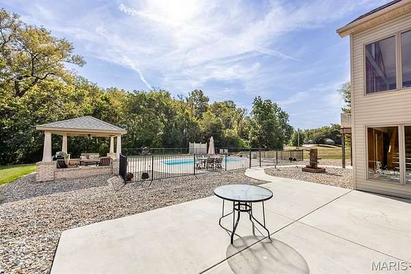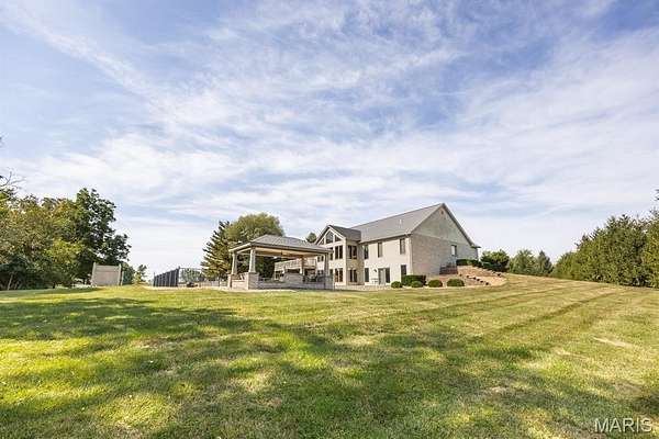 Tucked away on 2.37 private acres and framed by a picturesque tree line, this exceptional residence offers privacy, space, and refined comfort in the heart of Millstadt. Boasting nearly 5,000 square feet of finished living space, this move-in-ready home is ideal for those seeking a true forever home. The thoughtfully designed floor plan features four bedrooms and three full bathrooms, with abundant natural light flowing throughout. A covered front porch welcomes you into the bright, open interior, highlighted by an atrium-style walkout and expansive windows. The formal dining room transitions seamlessly into the spacious living room, showcasing vaulted ceilings, a stunning see-through fireplace, and custom built-in bookshelves. The gourmet kitchen is a dream, offering granite countertops, stainless steel appliances--including a wall oven and gas cooktop--an impressive amount of cabinetry, and an oversized pantry perfect for food and small appliances. Enjoy effortless entertaining with direct access to the maintenance-free covered deck. A generous laundry room provides ample cabinet space, adding everyday convenience. The primary suite is a true retreat, accessed through elegant double doors and featuring a well-appointed walk-in closet with built-in shelving, a counter, and ironing station. The spa-inspired en-suite bath includes a water closet, double vanity, walk-in shower with dual rain showerheads, and a luxurious freestanding soaking tub. Two additional bedrooms and a full bath complete the main level. The finished lower level offers approximately 2,250 square feet of versatile living space, ideal for entertaining year-round. Highlights include a fully equipped wet bar/kitchen with electric range, dishwasher, and microwave, as well as a spacious family room. A custom Busch Stadium mural creates the perfect atmosphere for sports enthusiasts, with pool and shuffleboard tables negotiable. This level also includes an additional bedroom with patio access, a full bathroom, and a craft room. Step outside to enjoy the expansive patio area, featuring a modern water fountain, covered spaces, a hot tub, and a large gated in-ground saltwater pool with a covered grilling area--perfect for outdoor entertaining. Additional features include a finished attached two-car garage with built-in cabinets and countertops, central vacuum system. The detached four-car outbuilding adds tremendous value. An additional 3-acre parcel is available for purchase (Parcel No. 12-15.0-106-012). Contact your Realtor for more information. Buyer to verify all information.