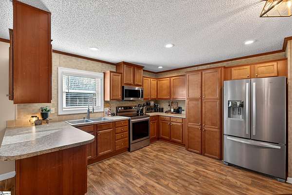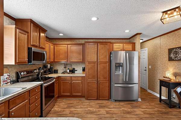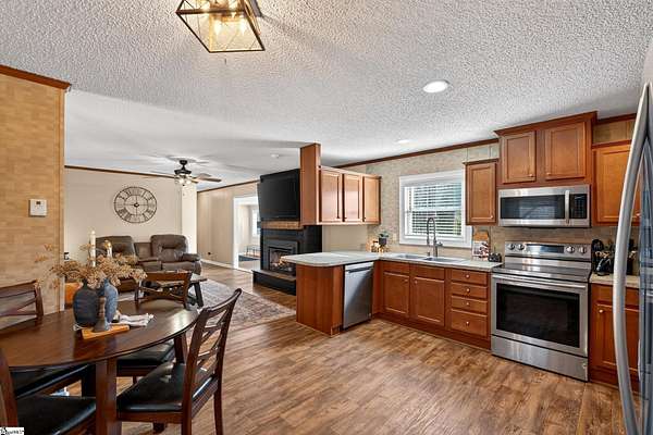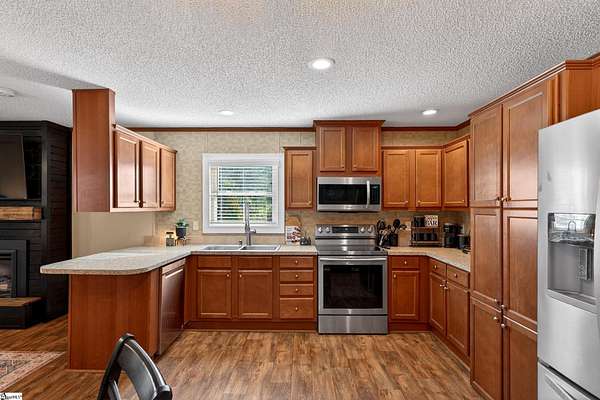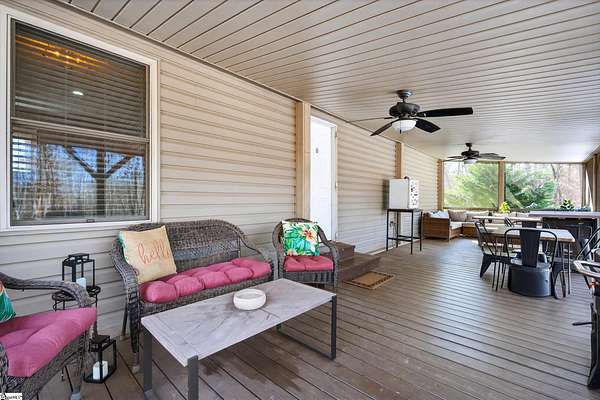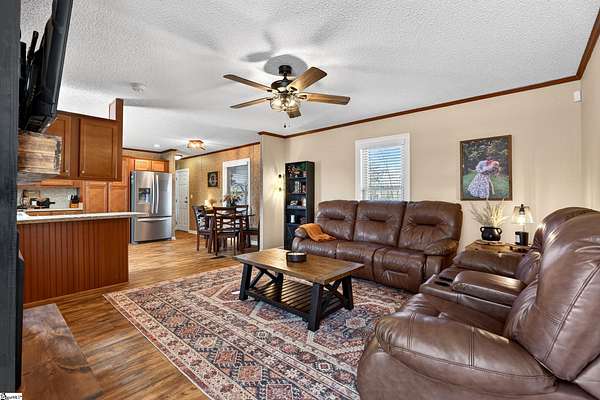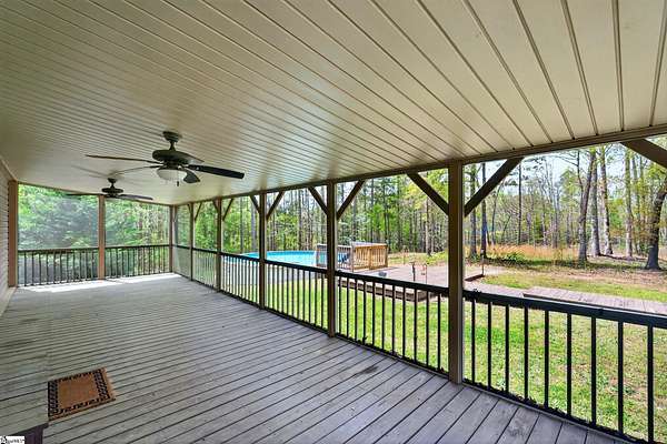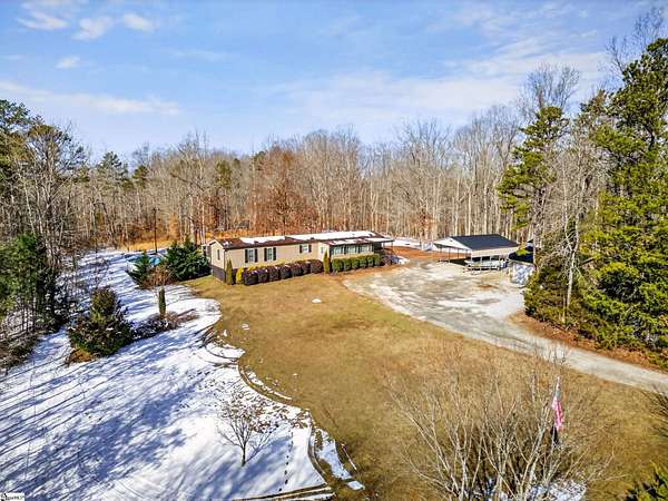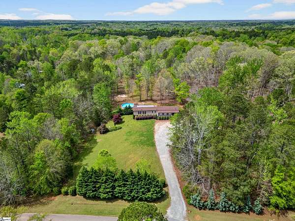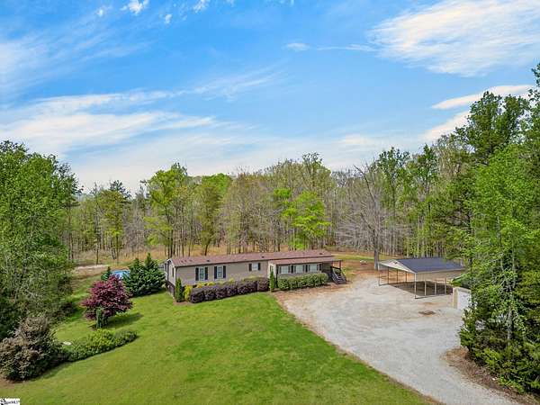 Escape to the peace and privacy of country living with this beautifully maintained property set on nearly 7 acres in the quiet countryside of Gray Court! Tucked away on a small, low-traffic street in the desirable Hickory Tavern area, this wooded property offers the perfect blend of space, comfort, and opportunity. A separate homesite already equipped with power, water, and septic is ready for another home, manufactured home, or guest setup—perfect for multi-generational living, rental potential, or future expansion! Additional features include a 2-car detached garage with electricity, a carport, and multiple outbuildings for storage, hobbies, or workspace. The 1,364 sq ft manufactured home has been thoughtfully upgraded and is in excellent condition. Inside, you'll find a bright open floor plan connecting the living, dining, and kitchen areas—ideal for everyday living and entertaining. The living space features a cozy electric fireplace, while the kitchen is equipped with stainless steel appliances and great functionality. Make sure to check out the hidden walk-in laundry room directly behind the full size cabinets, adjacent to the refrigerator. This 3 bedroom, 2 bathroom home includes a spacious primary suite with double vanities, a relaxing garden tub, and separate shower, creating a comfortable retreat at the end of the day. LVP flooring in the bedrooms adds durability and style. A large sunroom/flex space provides the perfect spot for a home office, hobby room, or additional living area. Step outside and enjoy the natural surroundings from the large screened porch overlooking the woods, or spend summer days relaxing by the swimming pool with extensive decking—an ideal space for gatherings and outdoor enjoyment. The almost 7-acre property offers incredible versatility— If you're looking for privacy, land, and flexibility while still being within reach of Upstate amenities, this unique property offers endless possibilities. Come experience the space, quiet, and opportunity that 71 Lodgeview Ct has to offer! Schedule your showing today!