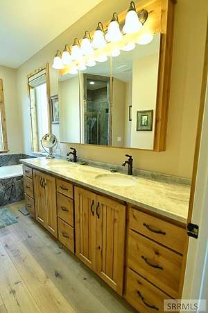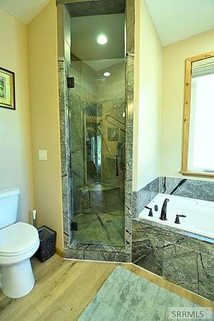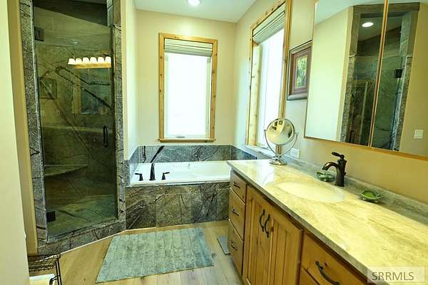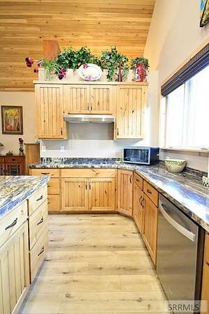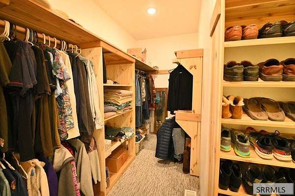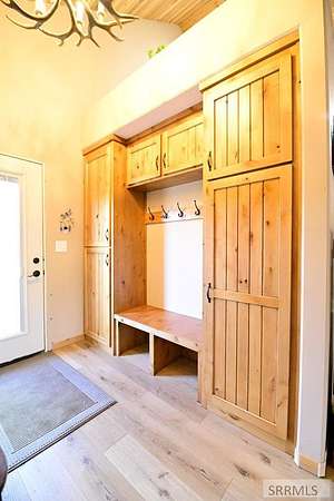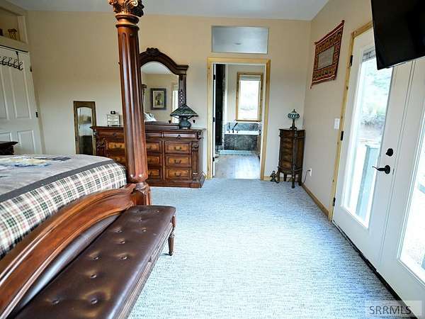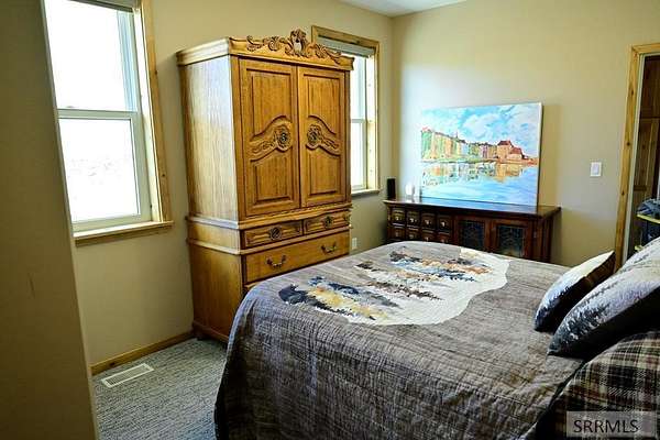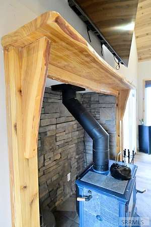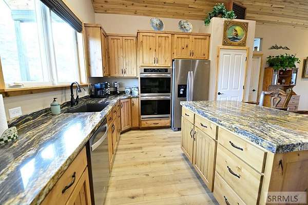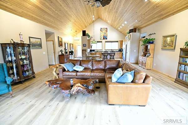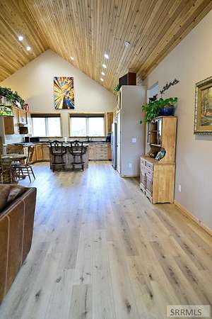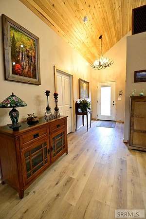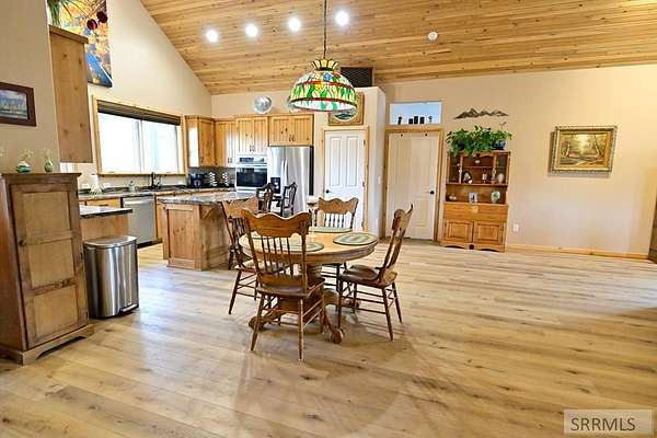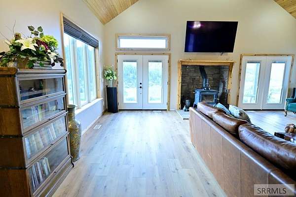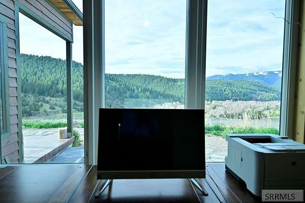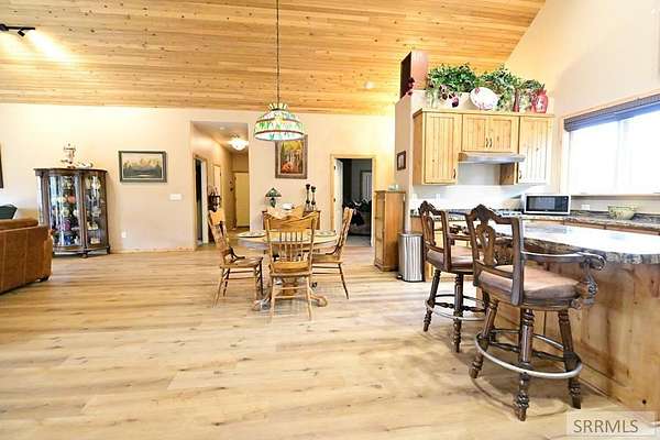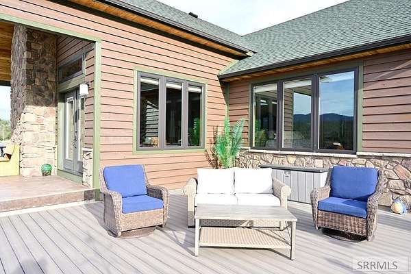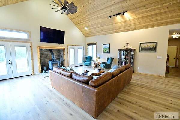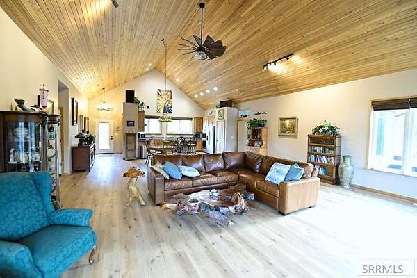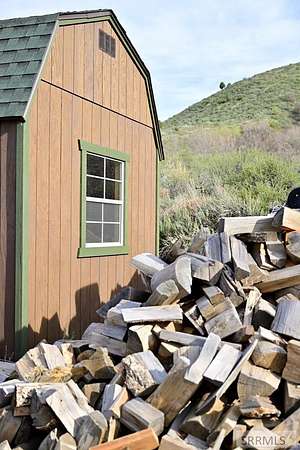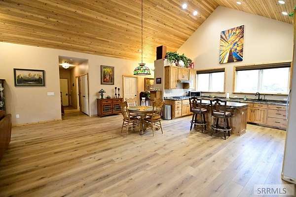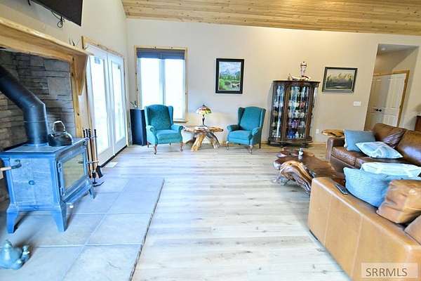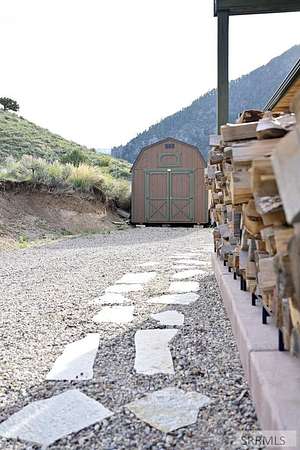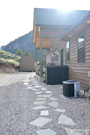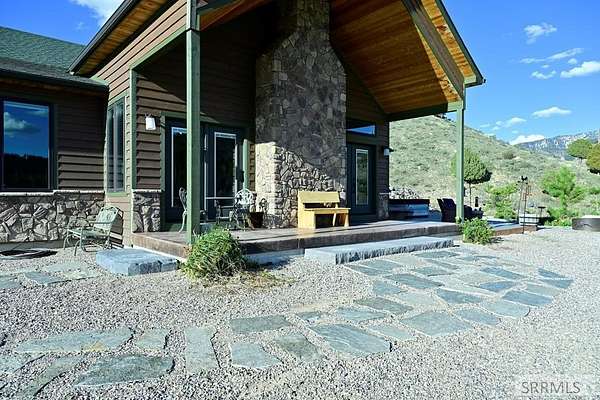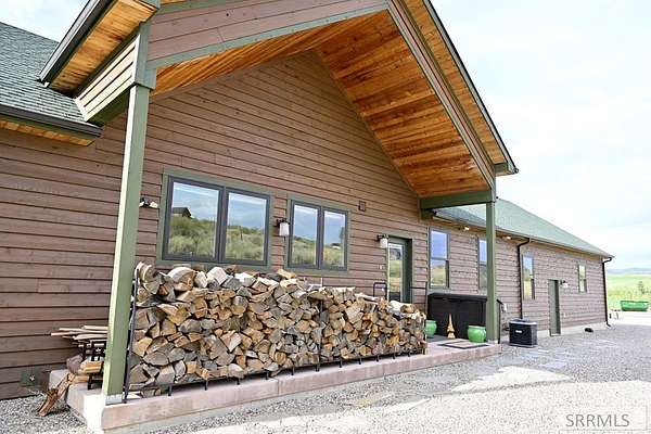 Paradise is not an overstatement. Set on 5 private acres bordering BLM land, this custom home offers exceptional privacy, unobstructed mountain views, and the peaceful sound of nearby Palisades Creek. Designed with intention, the home features vaulted ceilings, rich custom woodwork, and expansive picture windows that bring the outdoors in. The open layout is both inviting and functional, anchored by a wood-burning stove with a custom knotty alder mantle. The kitchen and baths showcase granite countertops, while the primary suite offers direct access to a private hot tub under star-filled skies. Wildlife including elk and deer are frequent visitors. A 3-stall garage plus heated workshop/craft room and a large custom shed provide ample space for hobbies and storage. With three cords of chopped firewood ready, you'll be set for cozy winter nights. Located in a quiet cul-de-sac near world-class fishing, top-rated ski resorts, and endless hiking, biking, and windsurfing, this property is a rare blend of luxury, seclusion, and adventure.