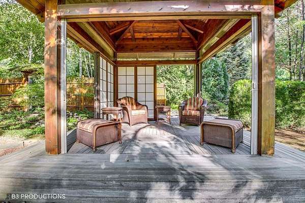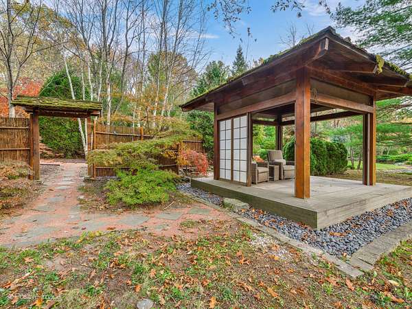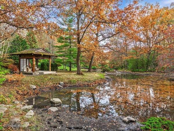 Experience a rare opportunity to own an exclusive estate designed for a seamless connection with nature, offering a peaceful escape from the hustle and bustle of everyday life. As you drive down the beautifully landscaped driveway and arrive at the grand paved portico, you'll be surrounded by a stunning array of Australian Pines, ornamental trees, and vibrant flowering shrubs. The magnificent home boasts breathtaking views from every room, with spacious, thoughtfully designed interiors perfect for creating lasting memories. Luxurious finishes throughout, including marble floors in entry and hallways, New hardwood floors throughout, all new high end appliances in kitchen, All new primary bathroom with sauna, masonry fireplaces, and soaring cathedral ceilings, provide a refined living experience. Outdoors, enjoy the serene ambiance of the inground pool, greenhouse, and barn with additional work spaces. Explore the tranquil Japanese-inspired garden with two ponds, cross the bridge to experience the soothing sound of waterfalls, and unwind in the peaceful pavilion. Take a moment to envision yourself in this extraordinary retreat--then schedule your private showing today.