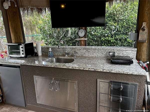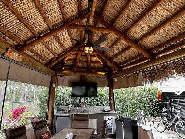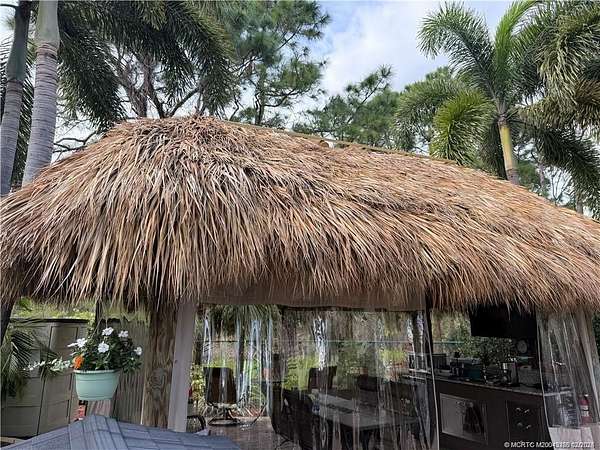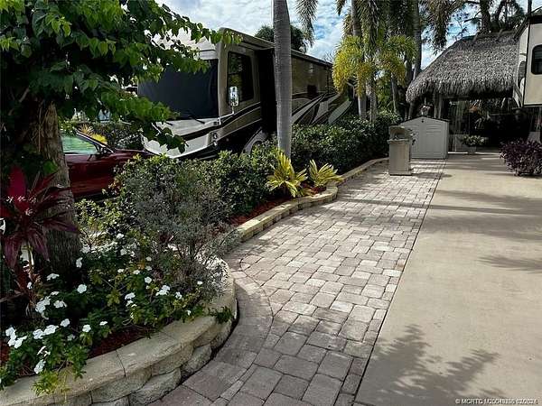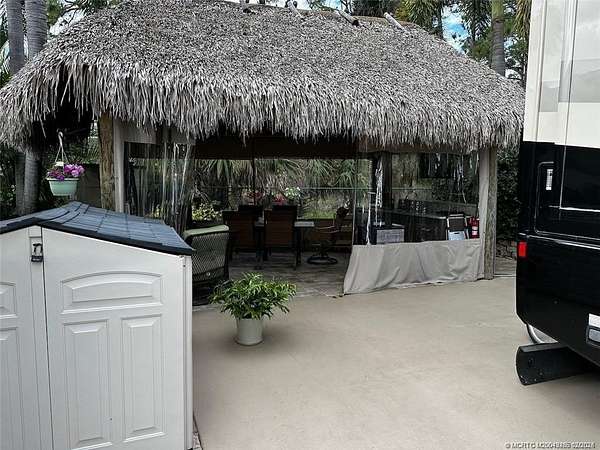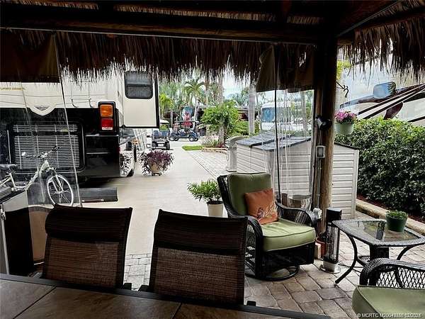 Discover unparalleled tranquility on this generously sized, extra-deep lot offering exceptional privacy. Nestled against the serene backdrop of the preserve, this oasis beckons those with a passion for gardening, with ample space along the fence to cultivate your own botanical haven. Conveniently situated near the north satellite pool/spa, bathhouse, and laundry facilities, this expansive lot is adorned with lush, mature plantings and meticulously landscaped raised beds, creating a verdant sanctuary. Unwind in style at the spacious tiki, complete with eisenglass curtains for chilly evenings and a custom granite-topped kitchen. Fully furnished with a table and chairs, comfortable seating, a television, and ample storage. Whether you're indulging in al fresco dining or simply basking in the tranquility of nature, this retreat promises a truly immersive experience for nature enthusiasts. Embrace the serenity of this nature lover's paradise. NEW tiki re-thatch November 2024!