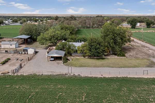Discover country living at its finest on this 9.53-acre irrigated farm w/ pre-1907 water rights. Currently planted in alfalfa, this property offers lush grounds with automatic watering for plants and grass surrounding the home. Enjoy the views from the charming front porch. The cozy residence features knotty pine walls, a wood-burning fireplace, upgraded windows, tankless water heater (2020), and a spacious country kitchen. With 3 bedrooms, 2 baths, and a large sunroom adding 542 sf to the home, it's ideal for gatherings. Outside you'll find a propanel roof with gutters, garden area, animal pens, covered hay storage, a 2-car carport, garden shed, plus a larger 2-room outbuilding with power, plumbing, and insulation. This property is the perfect blend of farm utility and homestead charm!