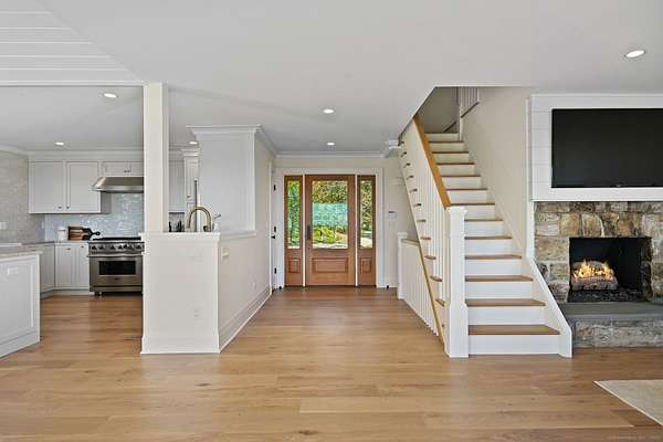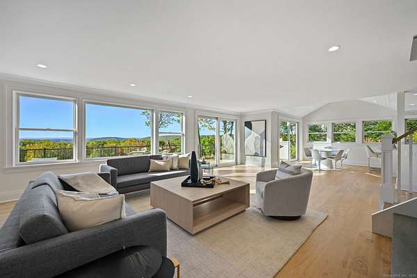 A masterclass in modern luxury, this breathtaking Ridgefield estate has been meticulously reimagined by premier builder Thomas Sturges Construction, achieving a rare balance of architectural brilliance, refined comfort, and energy efficiency, all set against awe-inspiring panoramic 50-mile views of the Hudson River Valley. Completely transformed, the residence unveils a sophisticated open-concept design where wide-plank oak floors, walls of glass and impeccable craftsmanship define every space. The chef's kitchen is a showpiece of form and function with natural stone counters, custom cabinetry and professional-grade Viking appliances seamlessly flowing into a chic dining area and luminous living room anchored by a sleek gas fireplace. The main-level primary suite is a private sanctuary, offering dual walk-in closets and a spa bath worthy of a five-star retreat. Upstairs, two additional ensuite bedrooms showcase exquisite finishes and elevated comfort. The lower level extends the living experience with a full in-law or au pair suite, complete with separate entrance, laundry and a stunning family room framed by stone-accented walls. Outdoor living is redefined with tiered decks, a granite patio, Wagner pool and spa and a romantic gazebo set amid manicured grounds. Great NYC commute. Perfectly sited minutes from Ridgefield's boutique shops, acclaimed dining and cultural attractions. An exceptional residence embodying the pinnacle of modern elegance and timeless craftsmanship!