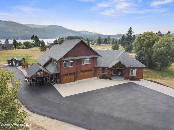 This Luxury home on 3.36 acres is a rare find! Featuring tall and open spaces, lots of natural light. Kitchen remodeled in 2024 Beautiful re-modeled wood cabinetry and Quartz countertops. This 3740 sqft, 4br ,3bth home was designed to entertain family and friends. Includes 800 sqft upstairs living room spac with bathroom. Don't miss out on taking a look at this hand crafted and well loved home. Great north Idaho location in a great neighborhood. 1/2 Mile from public boat launch and a few minutes from Riley Creek recreation that includes biking trails, walking trails and a designated swim area. Home currently priced below county assessed value. This home won't disappoint. Too many improvements to list here. Check out the MLS listing supplement docs for a complete list of improvements and renovations. Riley Creek Campground with tons of activities and amenties less than 1 mile away.