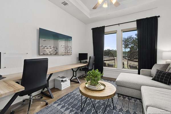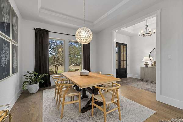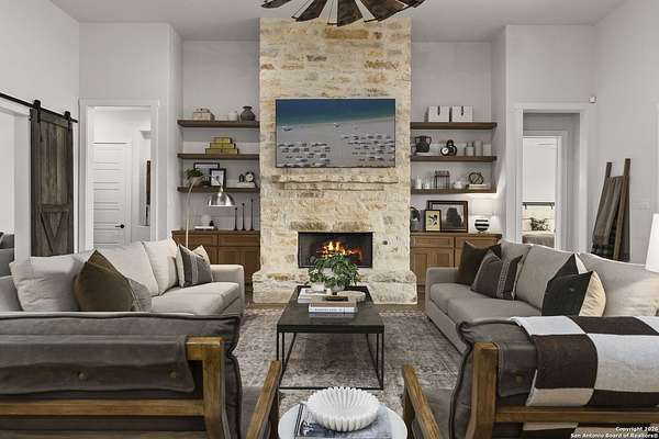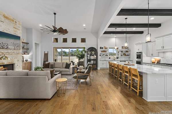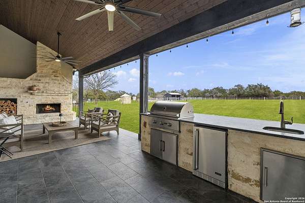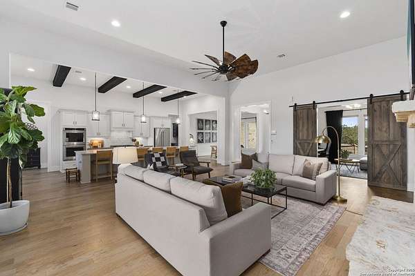 Est $7,810/moModern ranch-style custom home on 4.23 acres in the gated community of Sabinas Creek Ranch, sits just outside of Boerne. This beautifully designed home features high ceilings, an open-concept layout, and a modern kitchen with a huge island, ideal for entertaining. Enjoy outdoor living on the back patio with a cozy outdoor fireplace overlooking your private field with expansive views. A rare blend of modern finishes, privacy, and Hill Country living, Horses and other animals welcome!