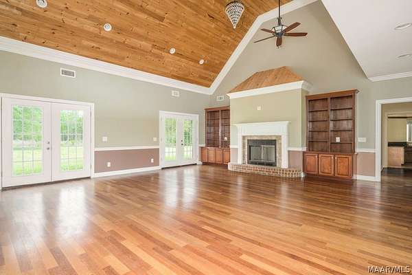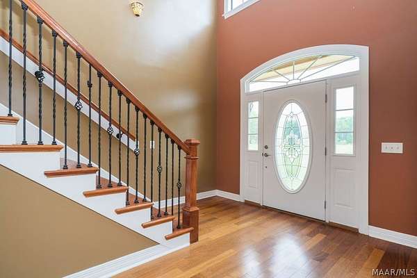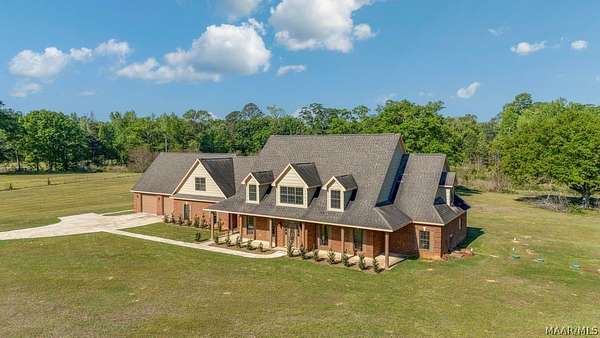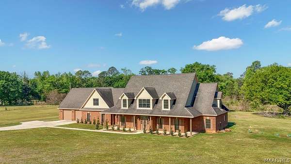 Space, privacy, and scale on 4 acres - with the rare advantage of a home that has never been lived in. This 6 bedroom, 6 bathroom home offers over 5,600 square feet of living space with a layout built for both everyday living and large-scale entertaining. Built in 2017 and never occupied, this home offers the feel and condition of new construction without the delays, uncertainty, or rising costs of building today. From the moment you walk in, the size stands out. The main living area features expansive hardwood floors, a fireplace, and custom built-ins, all opening into a large kitchen with extensive cabinetry, double sinks, and a central island designed for gathering. Just off the kitchen, a bright breakfast area with bay windows brings in natural light and views of the property. The main level includes a spacious primary suite overlooking the acreage, complete with a large bathroom, double vanities, and an oversized walk-in closet with built-in storage. A second bedroom and full bath on the main floor provide flexibility for guests or multi-generational living. Upstairs, you'll find additional generously sized bedrooms, each with access to a full bathroom, along with a large bonus space and open walkway overlooking the main living area. The vaulted wood ceilings and natural light create a unique architectural feel that sets this home apart. The home offers six full bathrooms throughout, all with consistent finishes, giving each bedroom functional access and privacy. The full-length covered front porch and wraparound design give you a place to enjoy the setting, while the 4-acre lot offers usable space for a future pool, shop, or additional structures. The long driveway, open land, and surrounding trees provide both privacy and flexibility. Located just off Highway 80, you get a quiet, rural setting while still being within a reasonable drive to Montgomery. Property is being sold as-is. Seller is welcoming offers.