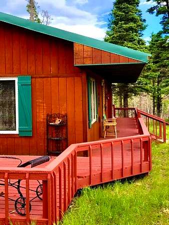 Southern sky and mountain views in Paradise Acres! This charming 2-bedroom, 1-bath home is among mature pines and aspens, with the soothing sounds of Pass Creek flowing just behind the property. Relax on the deck and take in the peaceful setting while watching local wildlife wander by. Spanning over 4 acres, the property offers plenty of room to explore & enjoy leisurely walks, access down to the creek, and ample space for entertaining family and friends in a serene, private mountain setting. The interior has been thoughtfully remodeled and comes furnished, showcasing a warm Colorado rustic mountain style. The insulated crawl space supports comfortable year-round living. A durable steel roof with underlayment and ice shield was installed in June 2022. Stay cozy during chilly mountain days & nights with the freestanding wood stove, complemented by independent room heaters for added warmth. This is a true mountain retreat offering comfort, and breathtaking natural beauty.