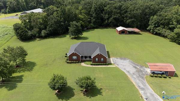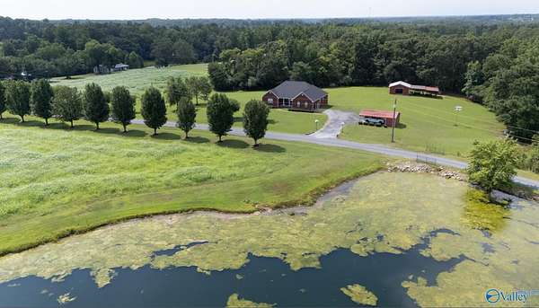 3 bedroom 2 bath all brick home sitting on 21+flat acres in the city limits of Boaz. Single story all main level living home features lots of cabinetry in the kitchen, stainless steel appliances, and granite countertops. Hardwood floors and tile. Spacious and practical layout perfect for everyday living and entertaining alike. Store tractors, trailers, and hay in the huge barn and go fishing in the 2 acre stocked pond with catfish, bass, and brim. Weather you are seeking a peaceful homestead/farm or simply extra space, this property delivers versatility and functionality in a tranquil, rural setting.