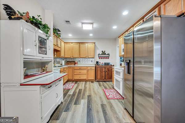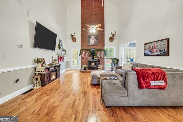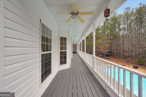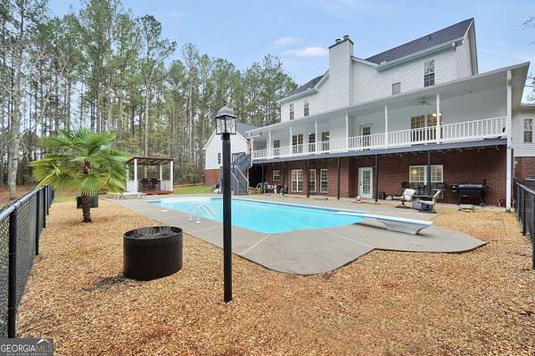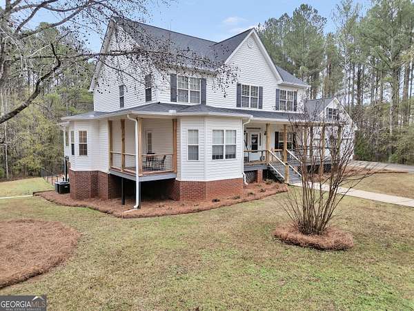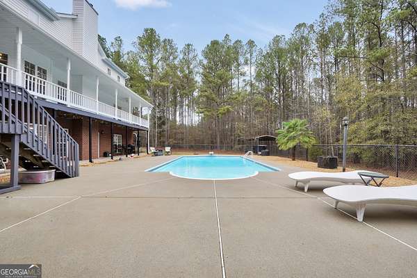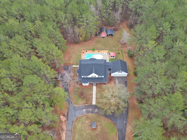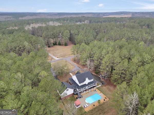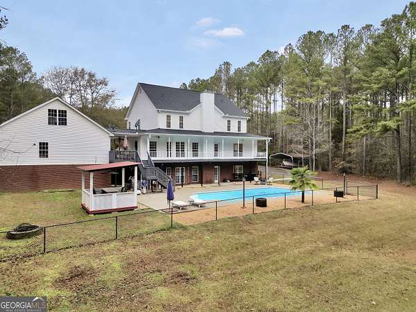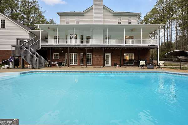 Situated on over six beautiful acres, this remarkable home greets you with a welcoming wraparound porch that invites you to relax and take in the peaceful surroundings. Inside, a bright foyer leads into a spacious family room featuring soaring ceilings and a timeless brick fireplace, creating a cozy yet open atmosphere. The main-level primary suite serves as a private escape, complete with a generous sitting area and direct access to the side porch. It also includes separate his-and-her closets and a well-appointed bathroom with a soaking tub and separate shower. The kitchen is both practical and inviting, offering abundant cabinet space and a pantry to accommodate everyday living and entertaining with ease. Upstairs, two large bedrooms each feature their own full bathrooms, while an additional open room with a closet provides flexible space for a playroom, media room, or potential fourth bedroom. The finished lower level offers a full in-law suite with its own entrance & parking, including a spacious bedroom, full bathroom, full kitchen, living area with fireplace, and private laundry-ideal for guests or extended family. Outside, the property truly shines with an in-ground pool, fenced area, storage shed, multiple carports, and a sizable two-car garage. Above the garage, an upper level with plumbing already in place presents endless opportunities for customization or expansion. Seller is going to provide a home warranty.
