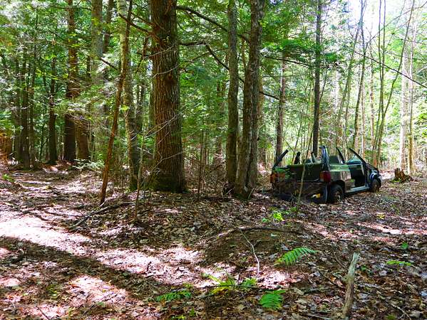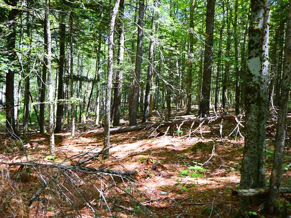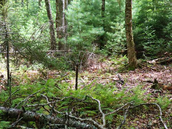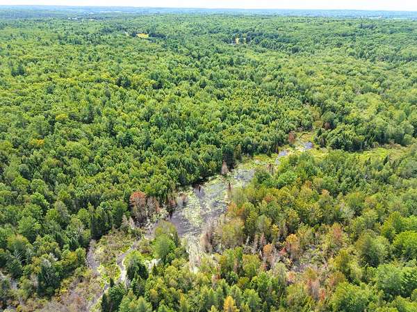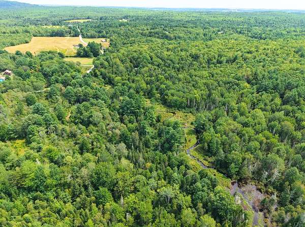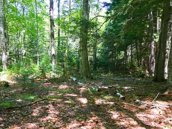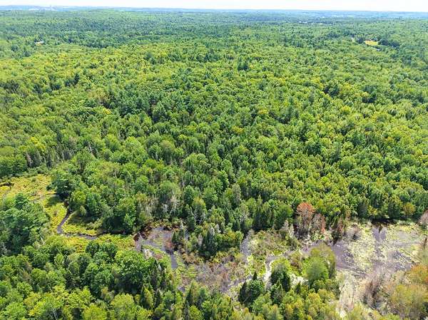 This 23-acre property features a combination of level and gently rolling terrain with mature pine and hardwood trees throughout. The land is mostly dry, with higher ground toward the back that is suitable for building. An old logging road runs along the left side, providing internal access across the lot. A natural wetland or brook system is located at the rear of the property, supporting local wildlife and contributing to the quiet, rural setting.