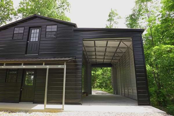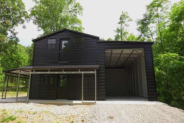 Opportunity awaits in Rocky River Vista! Nestled on 1.72 acres with direct access to the community fire pit and pavilion, this gated and partially fenced property offers both privacy and potential. This 650 sq ft barndominium shell, plus an approved plan to add 400 sq ft in the loft, sets the stage for your custom retreat. Imagine sitting on the top balcony to take in stunning bluff views or relaxing by your very own portion of a shared pond. With electric already installed, fiber optic available, and a circle drive featuring a RV pull-through garage, the groundwork is laid. With a newly dug well providing access to water and the property perked for a 3-bedroom home, this is your chance to build out your vision in a peaceful, amenity-rich setting.