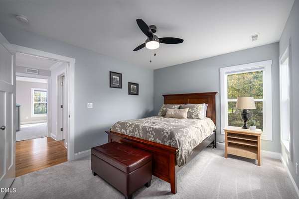 Stunning Custom Home on 1.65 Acres Better than new! Country setting in Pittsboro with Luxury Upgrades throughout! Welcome to 710 Hadley Mill Rd, where comfort, craftsmanship, and convenience converge on a beautifully partially wooded spacious lot. This expansive 3,127 sq ft home offers 5 spacious bedrooms and 4 full bathrooms, designed for both everyday living and exceptional entertaining. Step inside to discover an open floorplan with oak hardwood floors in all common areas. The gourmet kitchen features custom cabinetry, quartz countertops, huge island with ample seating space, massive walk-in pantry with custom shelving, sunlit breakfast nook with window seat and storage, separate dining room accessed by custom barn doors. You'll find a bedroom on the main as well as full bath. Retreat to the luxurious primary suite on the upper level with soundproofing, a spa-inspired bathroom boasting a 4' x 9' walk-in shower, soaking tub, heated towel bar, linen closet. Guests will love the private on-suite bedroom, there's also 2 other bedrooms upstairs accommodating large families. Built in book shelving line the wide upstairs hallway while every closet in the home features custom trim work. The huge walk-up conditioned unfinished attic provides tons of storage as well as endless possibilities for future expanding. Amazing 36x24 heated and cooled detached workshop on a separate 200-amp service-ideal for hobbies, storage, home business, gym, etc. The shop also provides 3 extra bays for vehicles. Outdoor living is effortless with a newly refreshed open and screened deck featuring 27-year Trex decking, aluminum railings, vinyl-wrapped supports, and low-voltage dusk-to-dawn lighting-zero maintenance required! A lot to offer here, no HOA fee! Location is unbeatable, just 6.5 mi to downtown Pittsboro, 23 mi UNC Chapel Hill, 26 mi Beaver Creek Shopping/Apex, 12 mi Robeson Creek boat ramp at Jordan Lake, 38 mi to RDU International Airport. Don't Delay, Come See Today!!