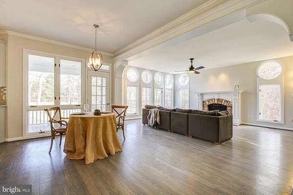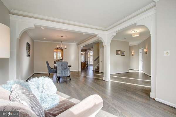 - Built-Ins, Chair Railings, Crown Moldings, Dining Area, Family Room Off Kitchen, Gourmet Kitchen, Island Kitchen, Laundry Chute, Primary Bath(s), Recessed Lighting, Upgraded Countertops, Wet/Dry Bar, Whirl Pool/Hot Tub, Wood Floors