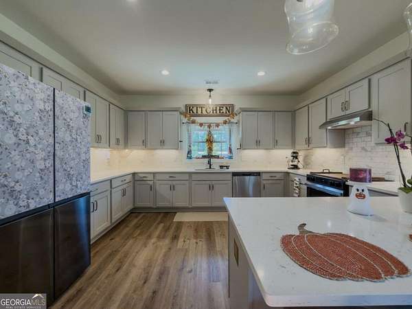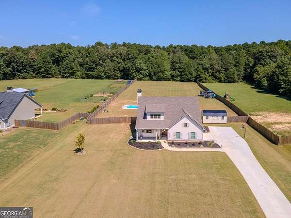 Welcome to this nearly new home in the heart of Monroe, offering a perfect balance of comfort and style. From the moment you arrive, the curb appeal shines with a welcoming covered front porch and a spacious yard ideal for outdoor enjoyment. Step inside to find an open floor plan designed for both everyday living and entertaining. The kitchen is a showstopper with its custom backsplash, sleek cabinetry, and generous island seating that flows seamlessly into the dining and living areas. The main-level owner's suite provides a private retreat with a spa-inspired bathroom featuring dual vanities, a walk-in shower, and elevated finishes. Secondary bedrooms are oversized, with one offering its own private large bathroom, creating flexibility for guests or multi-generational living. The upstairs media and bonus space adds even more room to spread out, whether for movie nights or hobbies. Outdoors, the brand-new 16x36 resort-style pool is the highlight of the property. With an 8-foot deep end, tanning ledge with bubblers, LED lighting, and custom concrete surround, it's designed for both relaxation and recreation. The expansive 2-acre lot provides plenty of room for play, gardening, or simply enjoying the peaceful backdrop. All of this is just a quick golf cart ride to historic downtown Monroe, with its vibrant shops, dining, and community events. This home blends quality upgrades, outdoor living, and a prime location-an incredible opportunity you won't want to miss.