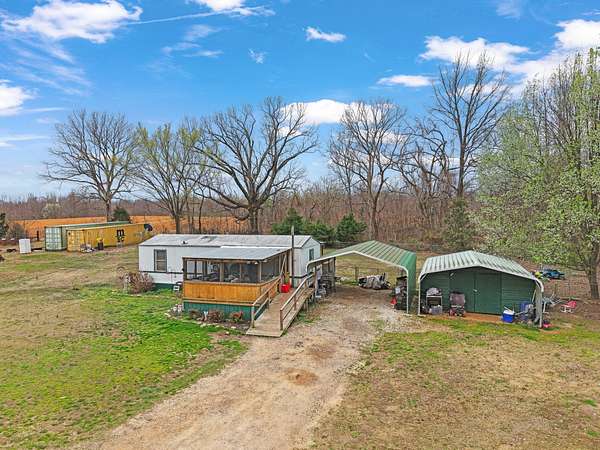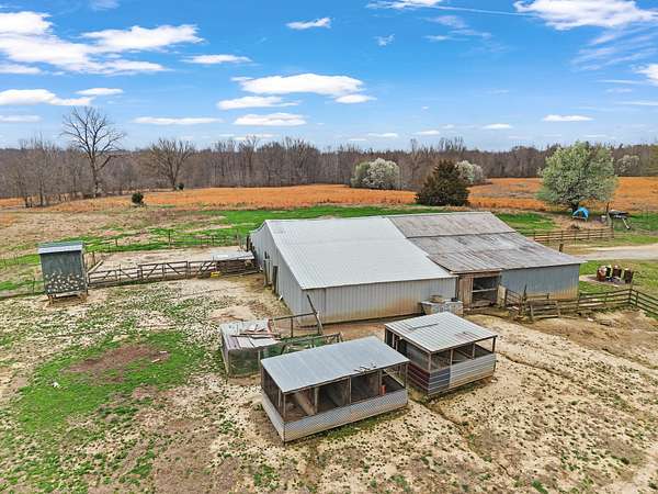 The property is already set up for country living and farm use with a mobile home on site, a large barn with an attached tiny home, and a separate sheep barn, giving you multiple functional structures for livestock, storage, or additional living space.
