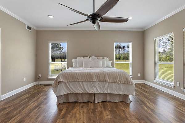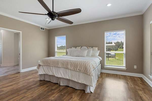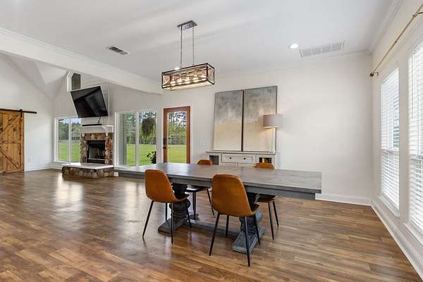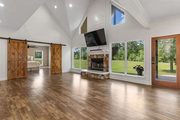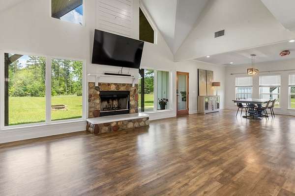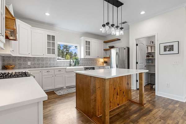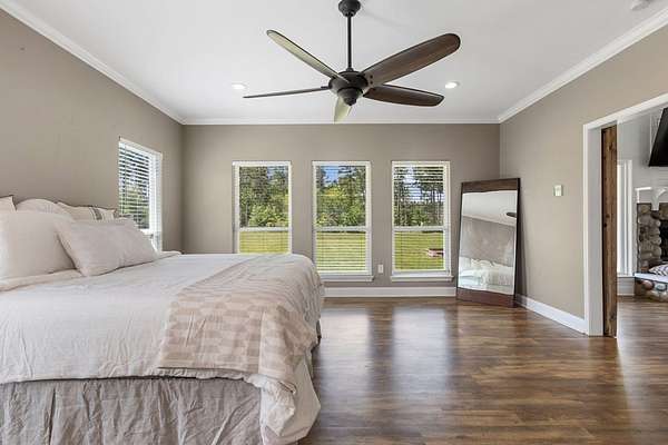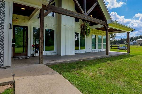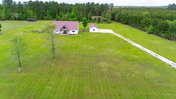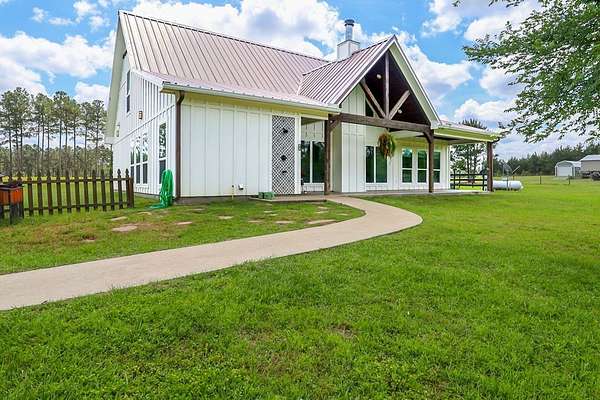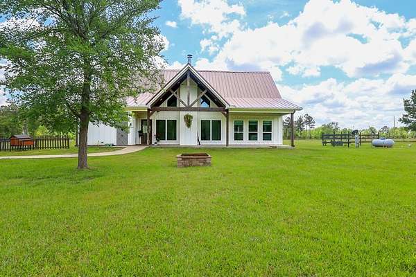 Situated on 6 private, fenced and gated acres, this 2019-built home offers the perfect blend of comfort, efficiency, and peaceful country living. The property features a private pond, open pasture, and wooded surroundings for added privacy. Inside, you'll find hardwood flooring, a bright open layout, and a well-designed kitchen with propane appliances and a large island ideal for gathering. The home includes 3 spacious bedrooms plus a versatile bonus room upstairs with a spectacular view. This room would be perfect for a nursery, office, play, or reading space. The primary suite offers a relaxing retreat with a soaking tub, walk-in shower, and double vanities. Energy-efficient features include on-demand hot water and a high-efficiency HVAC system. This is the complete package: space, privacy, and modern convenience all in a beautiful setting. Only 15 minute drive to N John Reddit in Lufkin.