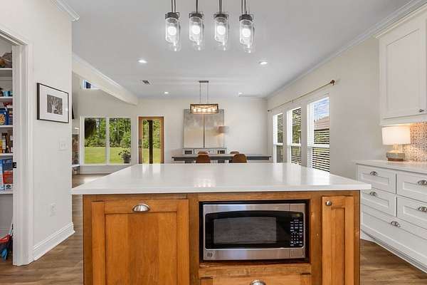 - Blinds, Bookcases, Breakfast Bar, Ceiling Fan(s), Gas Water Heater, Kitchen Island, Open Floorplan, Pot Filler, Primary-Lower Level, Vaulted Ceiling(s), Walk-In Closet(s)