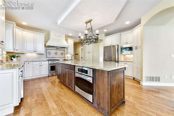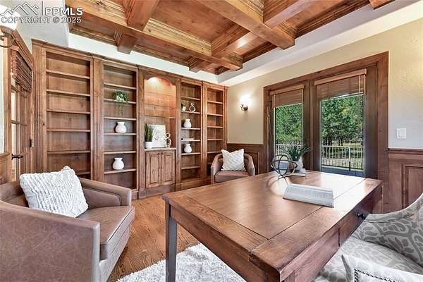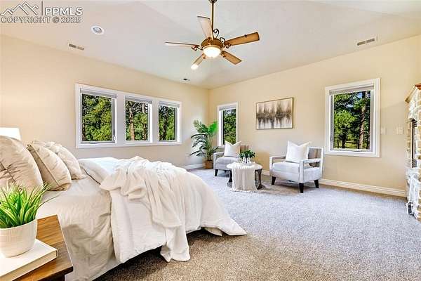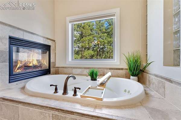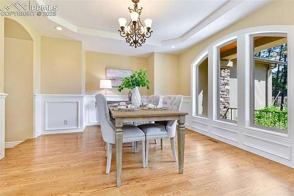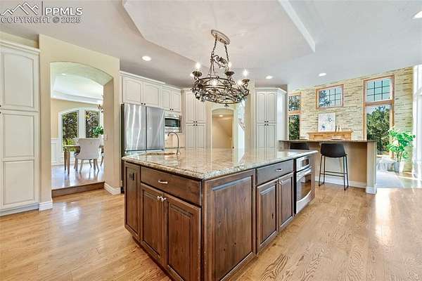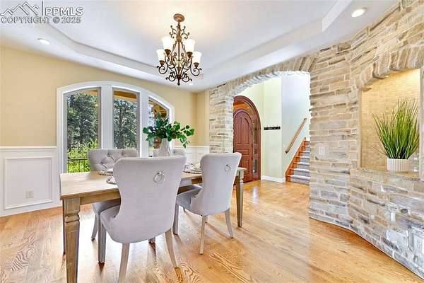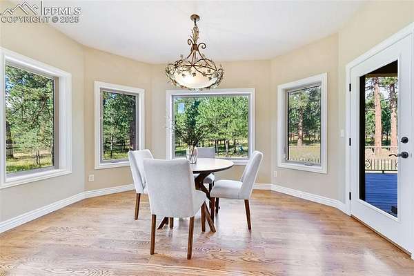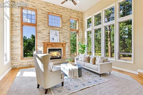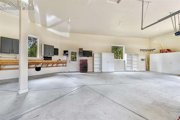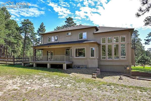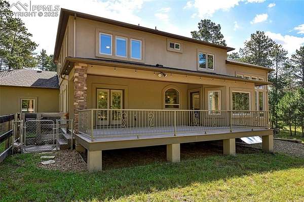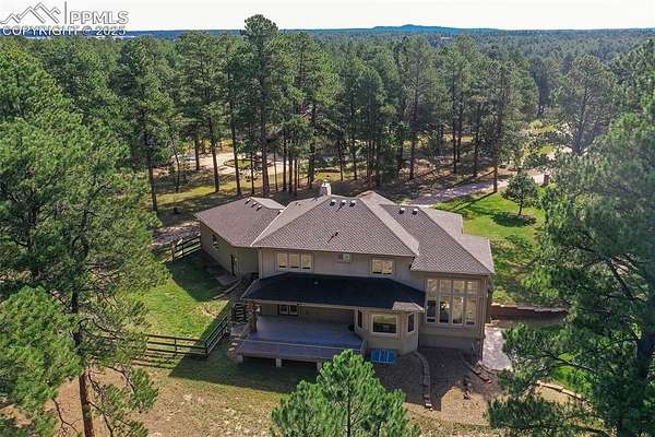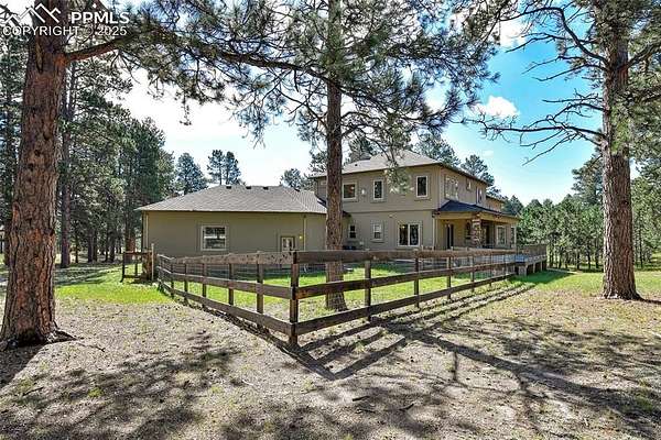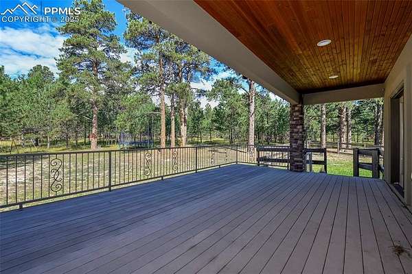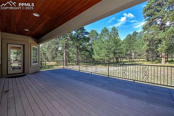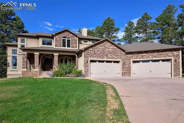 Located on a quiet cul-de-sac and nestled in the Ponderosa Pines on nearly THREE AND A HALF acres in Prestigious Kings Deer, this Stucco and Stone Two-Story Walk-out is True Colorado Luxury Living! Stamped concrete walkway leads to the covered entry with tongue & groove ceiling. Vaulted hardwood entry has art niche with marble mosaic tile and opens through arch to formal dining room w/rock wall, tray ceiling, art niche, wainscotting and kitchen access. Gourmet Kitchen has granite counters, extended height cabinetry, Stainless appliances include 6-burner gas stove w/griddle. oven & proofing oven, massive center island w/storage, vegetable sink and full secondary oven, and pass through bar with counter seating. Generous Breakfast Bay has walkout to private, covered composite deck w/wiring for speakers and access to fenced dog run. Enormous Living Room has two-story windows to let the natural wooded views in, and a stone wall with gas fireplace. Main level walk-out office off of powder room has coffered ceiling and built-in bookcases. Master Bedroom has 2-sided gas fireplace shared with 5-piece master bath with jetted tub and walk-in shower as well as 14 x 7 walk-in closet. Two more sizable bedrooms w/extended closets and a full bath w/double vanity upstairs. Enormous lower level Family Room boasts stone gas fireplace, entertainment center, game closet and wet bar, walks out to stamped concrete side patio. Spacious bedroom and full bath w/bidet and granite counters has private access to exercise room w/TV. Enormous storage room with shelving as well as under stair storage. Main level laundry/mudroom with washer, dryer, utility sink, built-in ironing board and bench with storage and closet has access to FOUR PLUS car garage with workbench, freezer, and loads of shelving! Expansive backyard with trampoline, swings and room for more in a park-like setting. Intercom, Security System, Central Air, 2 water heaters & furnaces. NEW CARPET & PAINT THROUGHOUT! A TRUE RETREAT!