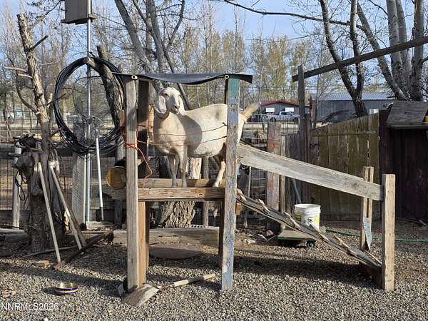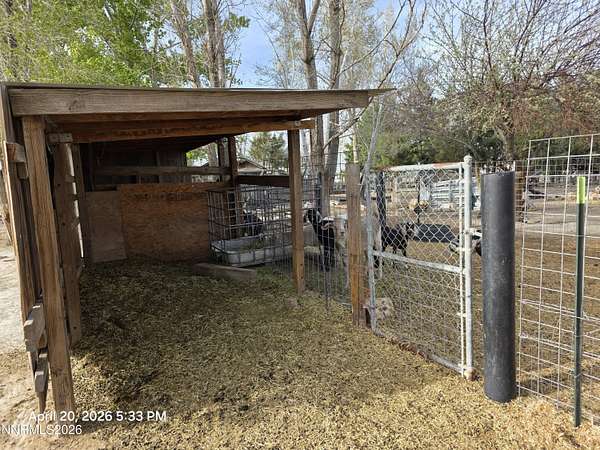 Welcome to this private, tree lined Ranch style retreat. Enter beneath the western style overhead, and experience the park like setting within. Once inside you notice the circle drive with a tree filled center where the quail gather, at the edges of the driveway, a tree line to provide privacy as well as much needed shade. Step beneath the arbor into a lush yard boasting a large brick cooking pit, and the stepped garden beds beyond. Notice the large covered patio where you can enjoy the dappled sunlight filtering through the trees. Inside the home you are greeted by a beautifully maintained home. The open concept living room dining room and kitchen make the home feel welcoming and warm. Just off the laundry room you will find a mudroom. Windows feature beautiful heavy duty wood blinds. the primary bathroom is more of an ensuite with a large walk in shower. In addition to these features, the property is ready for your livestock, with corals on site as well as goat and chicken barns. This property is large enough to live self sustainably, but small enough to not be burdensome. It is a true gem in the high desert. Privacy. Versatility. Beauty. Comfort. Peace. Don't miss out on this rare find!