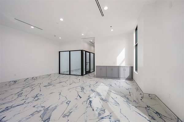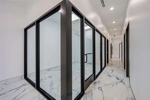The space features upgraded marble flooring throughout, soaring high ceilings, and an open-concept area complete with a stylish coffee bar--perfect for clients and team collaboration. Five private glass-enclosed offices provide natural light and a contemporary aesthetic, complemented by a dedicated conference room for meetings and presentations.