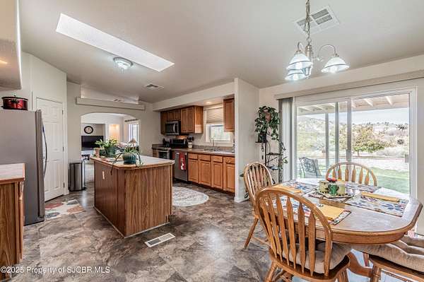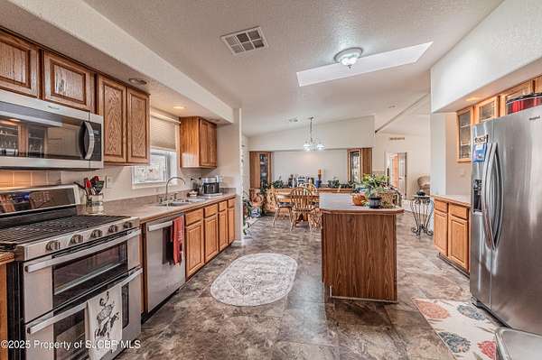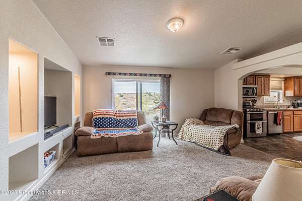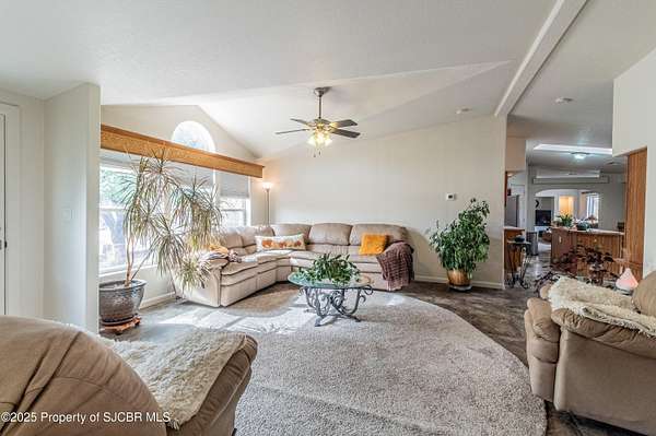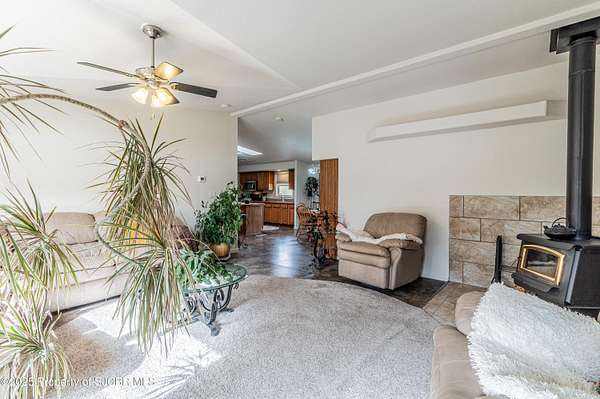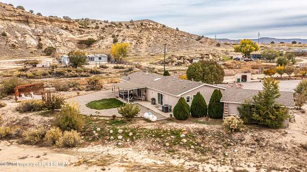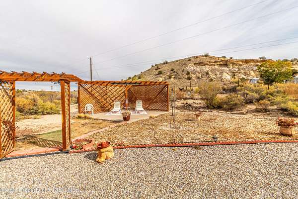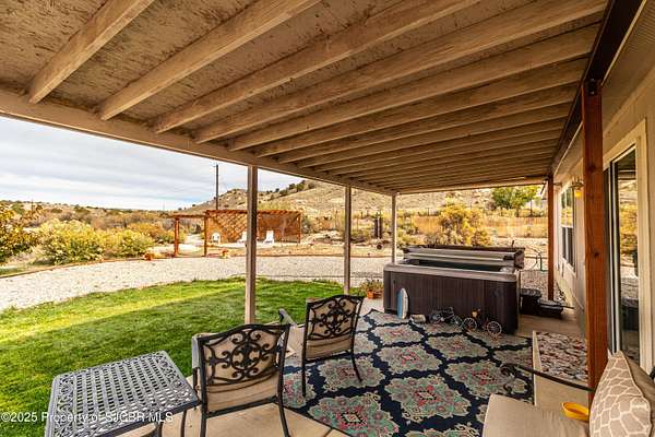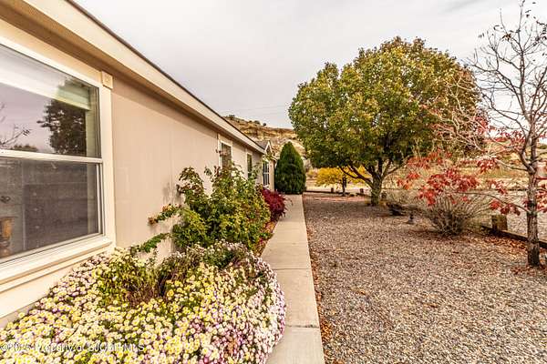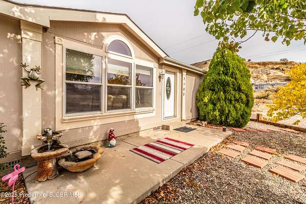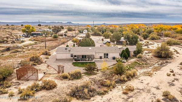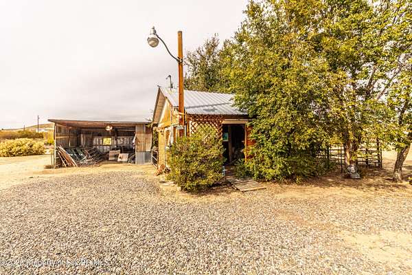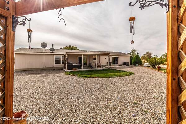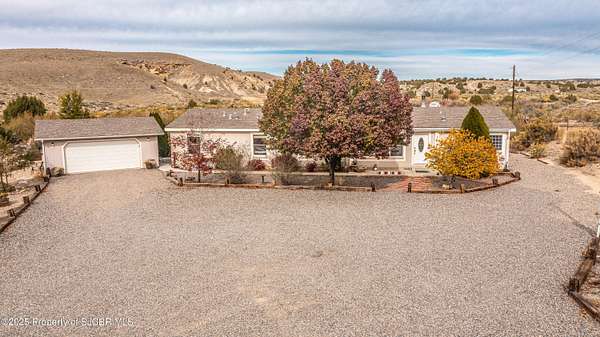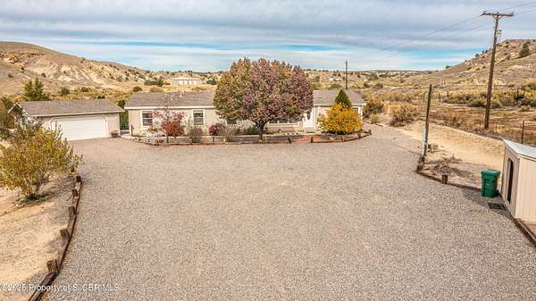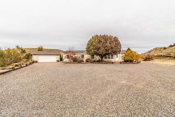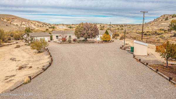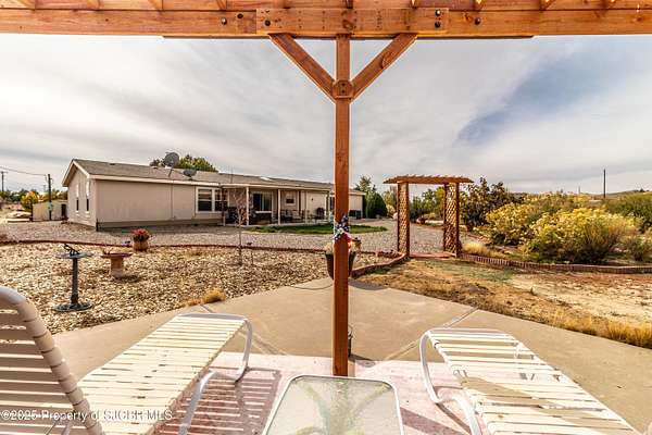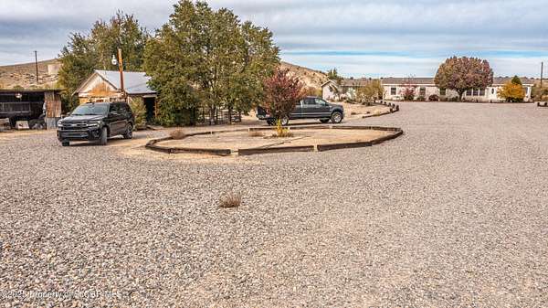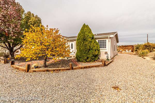 Welcome home to this beautifully maintained 4-bedroom, 3-bath manufactured home on a permanent foundation, perfectly situated on 6.59 acres of peaceful country living. Thoughtfully designed for comfort and convenience, every bedroom offers easy access to a bathroom, making it ideal for family or guests.Step inside to find two separate living areas, a cozy wood-burning stove, and an inviting office or parent's retreat just off the master suite. The custom walk-in closet, remodeled in 2020, adds a touch of luxury. Major updates have been taken care of include a new roof in 2023, refrigerated air installed in 2022, and newer appliances throughout.The laundry room is a dream with a freezer, sink, and direct access to the oversized detached garage. Outside, enjoy a covered boat storage, RV parking, and a usable barn and corral ready for your animals or hobbies. A mini orchard with a variety of fruit trees and a drip irrigation system keeps the landscape thriving.The backyard retreat is made for relaxation, complete with a pergola, hot tub, lush grass, and breathtaking mountain views. Part of the acreage includes water rights and a wash area that has been expertly managed with a berm constructed under Army Corps of Engineers guidance with no issues ever reported.This property truly offers the best of both worlds: peaceful rural living with thoughtful updates and modern comforts already in place. Whether you're looking for space to spread out, entertain, or simply enjoy the outdoors, this home has it all.