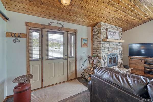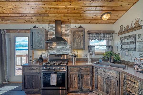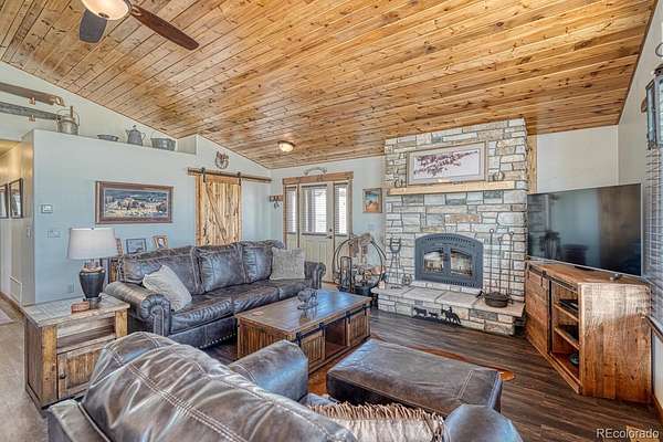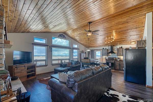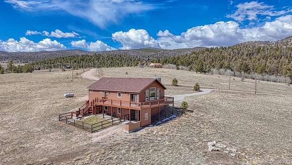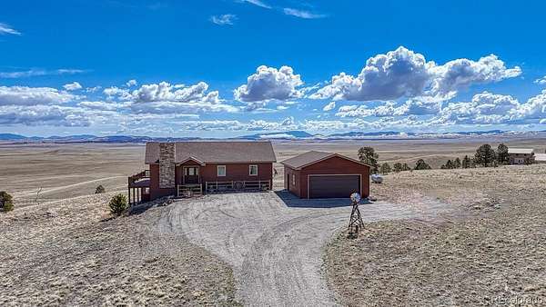 This exceptional custom-built home offers breathtaking 360-degree views and a perfect blend of rustic charm and modern amenities. Thoughtfully designed with high-end finishes and plenty of space to expand, this property is ideal for those seeking comfort, style, and functionality. Enjoy panoramic mountain vistas from every angle, providing a stunning backdrop for daily living. Featuring pine ceilings, pine trim, and barn wood sliding doors, this home exudes warmth and rustic charm. The rock fireplace serves as a striking centerpiece in the living area. The kitchen boasts stainless steel appliances and engineered laminate flooring for a stylish and durable finish. This home includes 2 bedrooms and 2 baths, with a primary suite featuring a walk-in closet, walk-in shower, and a beautiful copper sink. Soaring cathedral ceilings enhance the open, airy feel of the living spaces, adding to the home's inviting ambiance. Step outside onto the expansive wrap-around deck to take in the stunning views and enjoy outdoor living at its finest. With 1,450 square feet of unfinished space, the lower level offers incredible potential for additional living space, including a workshop, living room, third bedroom, bath, and mechanical room. The oversized 2-car detached garage features 8-foot doors, providing plenty of room for vehicles, storage, or outdoor gear. The partially fenced yard offers privacy while still maintaining the open, scenic views. A 250-gallon cistern ensures a reliable water supply, adding to the home's efficiency and practicality. The septic system is sized for a 3rd bedroom. It would not take much to finish the lower level. The information contained herein should be verified after buyer contracts to buy the property.