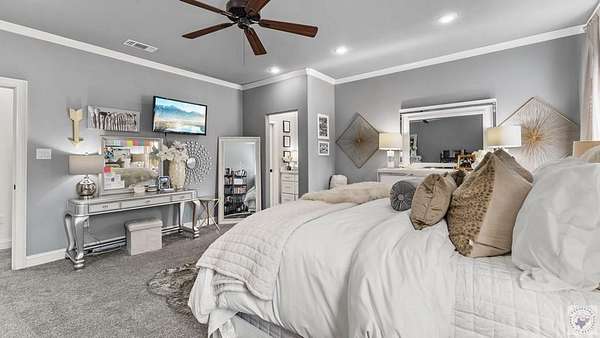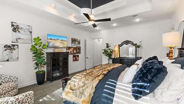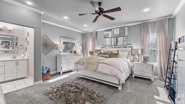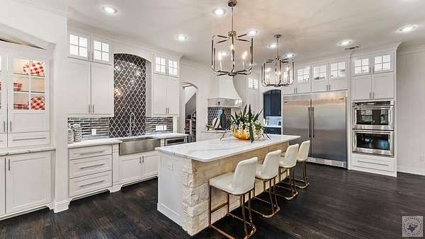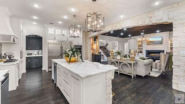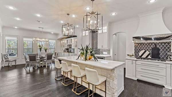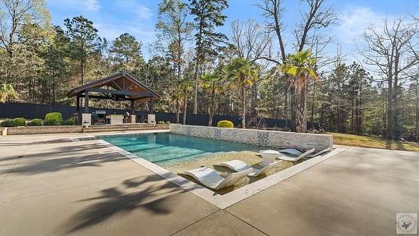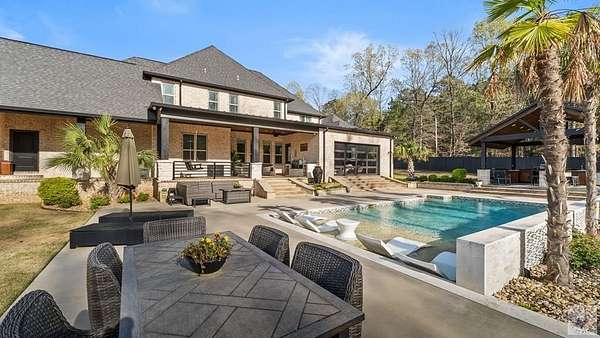 PRIVATE ESTATE LIVING NEAR BRINGLE LAKE PARK - Set on 3.76 picturesque acres just moments from Bringle Lake Park, this exceptional custom-built estate offers a rare blend of refined luxury, thoughtful design, and resort-style living. Built in 2019 and spanning an impressive 5,891 square feet, the residence features six bedrooms, five full baths, and two half baths-each space curated with both comfort and sophistication in mind. From the moment you arrive, the home's timeless French Provincial architecture and stately presence set the tone for what lies within. Inside, soaring ceilings and an effortless open-concept layout create an atmosphere of both grandeur and warmth. Designed for everyday living as well as elevated entertaining, the home offers three distinct living spaces, including a central gathering room anchored by a gas fireplace, a sunlit secondary living area that opens seamlessly to the outdoors through a dramatic glass panel bay door, and a dedicated game room ideal for hosting and relaxation. At the heart of the home, the chef's kitchen is a true statement in both form and function. Anchored by an oversized quartz island, this space is equipped with premium stainless steel appliances, a gas cooktop, double ovens, and a built-in ice maker. A formal dining room, butler's pantry, and expansive walk-in pantry further enhance the home's ability to host with ease and elegance. The primary suite serves as a private sanctuary, featuring vaulted ceilings and a spa-inspired bath complete with a soaking tub, oversized walk-in shower, and an expansive walk-in closet-creating a space designed for both rest and retreat. Outdoors, the property transforms into a true resort-style escape. A heated and chilled saltwater pool with a tanning ledge is surrounded by lush landscaping and mature trees, offering both privacy and tranquility. The covered patio with outdoor kitchen, along with an additional gazebo featuring its own outdoor kitchen.