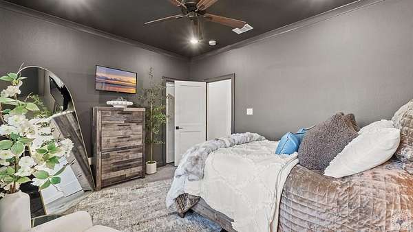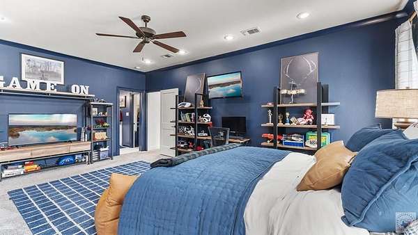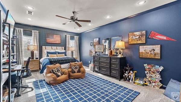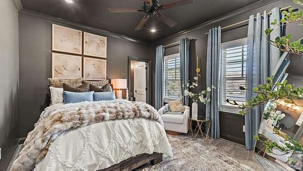 - Bookcases, Ceiling Fan(s), High Ceilings, Sheet Rock Walls, Smart Home, Smart Thermostat