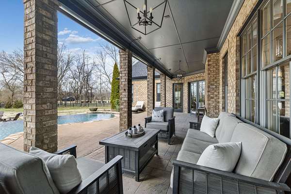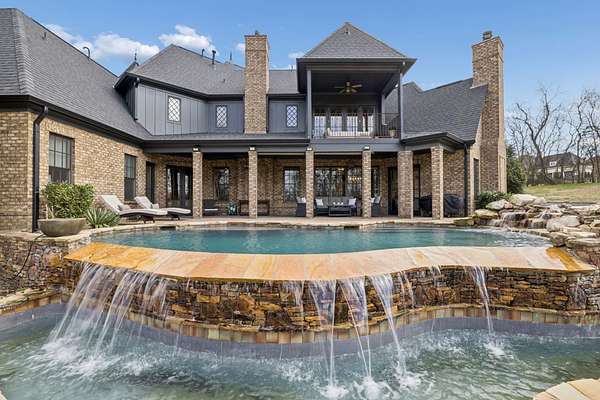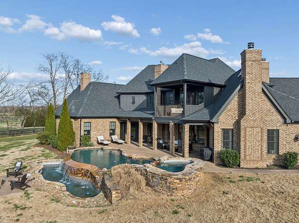Minutes to Franklin. A world away from everything else. It’s All About the Views! Rare offering in the exclusive Black Hawk subdivision, this stately custom brick and stone residence is gracefully set on 2.82 scenic acres along Arrington Creek, capturing panoramic pastoral countryside views. A gated entry, circular drive, welcoming arched entry, and porte-cochère establish an elegant arrival. Designed for both everyday comfort and refined entertaining, the home showcases timeless architecture, quality craftsmanship, warm natural materials, and expansive windows that fill the interior with light while framing the serene landscape. The main level features inviting gathering spaces, coffered ceilings, wine cellar, a spa-style Owner’s Suite, and a grand chef’s kitchen with quartzite countertops and a professional pizza oven. Upstairs offers a theatre room, mini kitchen, gym setup, and a covered veranda—perfect for morning coffee overlooking the saltwater pool or enjoying spectacular sunset evenings. Beautifully manicured grounds, private creek frontage, and exceptional privacy create a true retreat setting with seamless indoor-outdoor living. Conveniently located less than 20 minutes to historic downtown Franklin, approximately 30 minutes to Nashville, and about 40 minutes to Nashville International Airport. A rare blend of luxury, tranquility, and accessibility—this is more than a home, it’s a lifestyle. Schedule your private showing today.