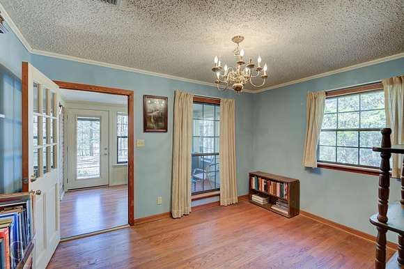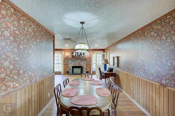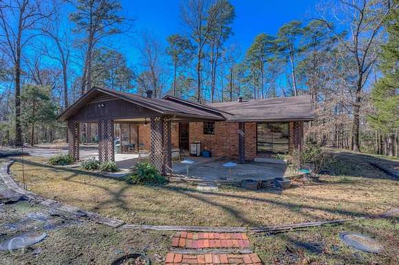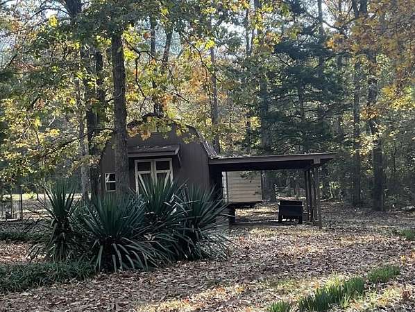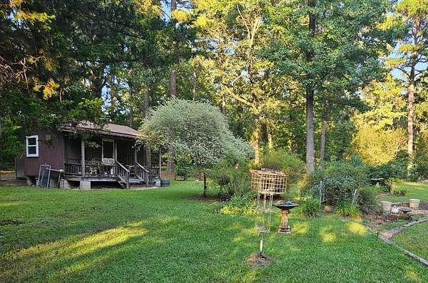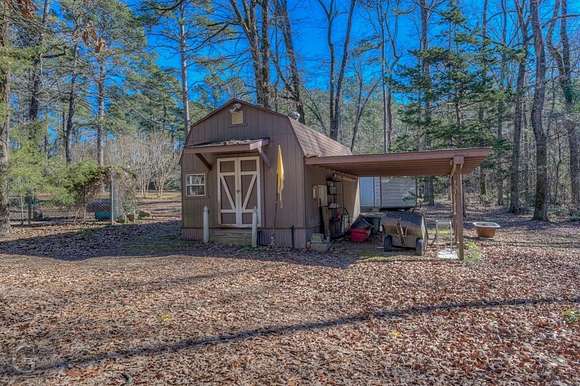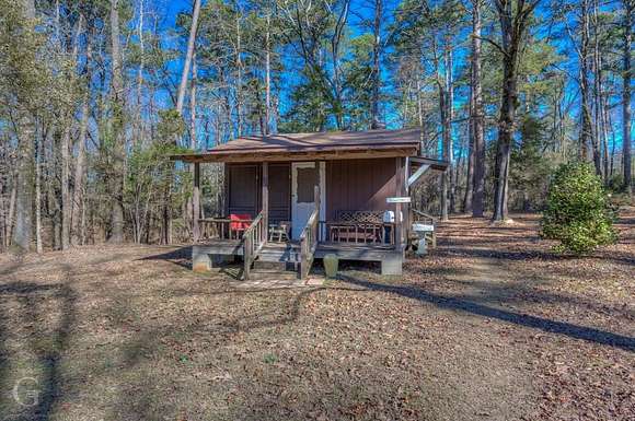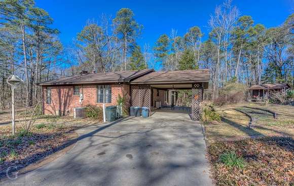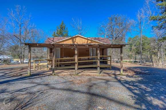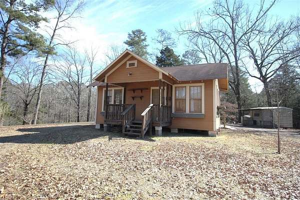Major Price Improvement! This home has nearly 13 acres of the most beautiful land around. Not only does it have rolling hills, lots of trees, but it has a meandering live spring fed creek and bridge to get to the main home at the back of the property. Once you get there and look back over the property, it will make you feel like you are in the foothills of the Ozarks. The serenity is mesmerizing. The home has a nice sized kitchen with lots of cabinets, plenty of counter space and a breakfast bar. The washer and dryer are hidden under the counter in the hallway area of the kitchen. The living dining combo has gas fireplace, ceiling fan, chandelier and beautiful wood flooring. A big den with built-in bookcases and lots of windows overlooks the covered patio. Just off the den is a roomy home office. This home also has a great sunroom that is perfect for relaxing and watching nature. Both bedrooms are roomy. The bath features tub shower and cabinet space. This home has storm windows throughout. Outside there are 4 storage buildings. One was an art studio, featuring elec, heat, air and a loft. There is also a kennel. Drive back up to the guest house that is 403 sq. ft. It features a living room, kitchenette and bath. It also has a ramp, large covered back porch and covered parking. There are more storage buildings here. One has elec, heat, air and one just down the hill has covered parking, elec and carpet. Could be turned into more guest sleeping quarters. Just across the street is a small private park that belongs to this property. This is a must see to appreciate the beauty and uniqueness it has to offer. Wildlife galore. It is just a qtr of a mile from I 49. Perfectly situated between Shreveport and Texarkana.