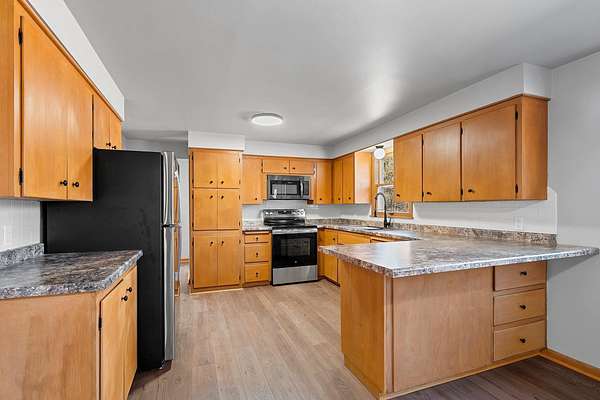 Fresh and Clean Split bedroom design ranch home set on a beautiful 2.15 acre wooded lot just outside of Oconto Falls. New soffit, fascia and rain gutters on exterior. Interior has fresh paint, new Luxury Vinyl flooring, counters, appliances, lighting and hardware. Massive Primary Bedroom has plenty of space to have a seating arrangement for lounging or reading in addition to bedroom set-also has a private bath and ample closet space. On the other end of the house are two nice sized bedrooms and a full bath with whirlpool tub. With the size of the wooded lot, you will hardly see your future neighbors. Detached garage will keep noise and clutter away from the house and there is room to build a garage onto the house if you wish. Make sure to view this home-not much like it for the price.
