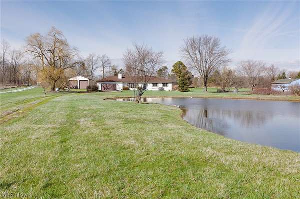 Discover the perfect blend of privacy, space, convenience with this 3-bedroom, 2.5-bath ranch on 2.27 acres in Lafayette Township. 2,018 square feet, this home is ideal for buyers searching for rural property with land, a pole barn, and easy access to Medina, highways, and everyday amenities. Set back from the road, this property delivers peaceful country living with pastoral views in every direction! Enjoy scenic vistas from every window, including a tranquil front pond. The spacious family room features a cozy gas fireplace and overlooks the water, creating a warm and inviting gathering space.The large owners' suite offers a private full bath and three closets, while the additional bedrooms are generously sized with access across the hall to a full bath. An eat-in kitchen with upgraded cabinetry provides plenty of room for cooking and entertaining. A formal dining room, opened by French doors, adds flexibility for gatherings or a home office. Enjoy the convenience of a spacious first-floor laundry and a half bath located near the back entrance for added functionality. Out back There's a wide covered porch overlooking an arbor and open green space with no neighbors in sight! Perfect for relaxing and enjoying the serene setting. The full basement includes a workshop area and abundant storage. Updates and features include a newer Trane furnace and central air, hot water tank, a whole house vacuum and a generator powered by propane for added peace of mind. Public water is an added convenience rarely found in rural settings. Pristine 28x40 pole barn with oversized garage doors perfect for hobbyists, car enthusiasts, or extra storage for equipment and recreational vehicles. Enjoy the best of both worlds! Quiet country living with easy access to Medina's historic square, shopping, dining, and major highways. If you've been searching for a ranch home with acreage, outbuilding, and privacy in Medina County, this is your opportunity. Bring your vision and make it your own