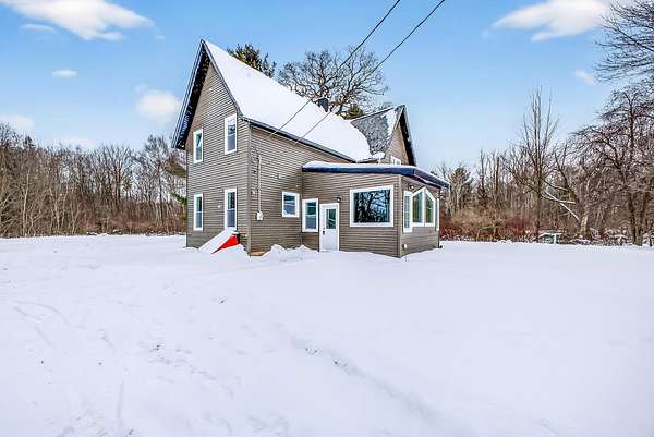Thoughtfully updated farmhouse set on 18.6 acres in the Montague countryside, offering privacy, flexibility, and proximity to Lake Michigan. This 3-bedroom, 2-bath home features a functional layout with modern updates throughout, making it well suited for use as a primary residence, second home, or short-term rental. The main floor includes a bright kitchen with solid surface counters and tile backsplash, a large pantry with additional storage, main-floor laundry, a four-season entryway, full bathroom, living room, and one main-floor bedroom. Upstairs, a loft area connects two spacious bedrooms and a beautifully updated full bath. A long private driveway leads to a peaceful setting with a stream flowing into a small pond, abundant wildlife, and room to enjoy the outdoors. The property consists of two combined parcels with road frontage on Webster Road and 40th, offering added flexibility. The home has seen extensive updates over time and includes a brand-new septic system. The full basement provides excellent storage and future potential. High-speed internet available. Enjoy close proximity to Benona Shores Golf Course and Old Channel Trail Golf Course, along with nearby Silver Lake, approximately 30 minutes to Muskegon and under an hour from Grand Rapids. Home may be sold fully furnished with full price offers.