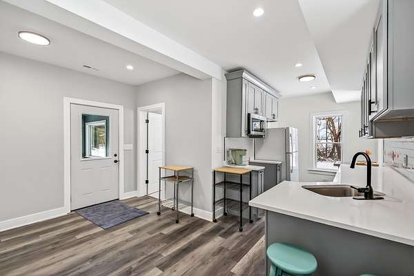 Thoughtfully updated farmhouse set on 7.52 acres in the Montague countryside, offering privacy, flexibility, and proximity to Lake Michigan. This 3-bedroom, 2-bath home features a functional layout with modern updates throughout, making it well suited for use as a primary residence, second home, or short-term rental. The main floor includes a bright kitchen with solid surface counters and tile backsplash, a large pantry with additional storage, main-floor laundry, a four-season entryway, full bathroom, living room, and one main-floor bedroom. Upstairs, a loft area connects two spacious bedrooms and a beautifully updated full bath. A long private driveway leads to a peaceful setting with a stream flowing into a small pond, abundant wildlife, and room to enjoy the outdoors. The home has seen extensive updates over time and includes a brand-new septic system. The full basement provides excellent storage and future potential. High-speed internet available. Enjoy close proximity to Benona Shores Golf Course and Old Channel Trail Golf Course, along with nearby Silver Lake, approximately 30 minutes to Muskegon and under an hour from Grand Rapids.