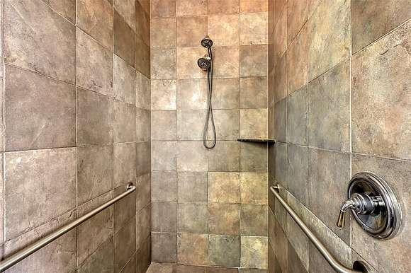 - Eat-In Kitchen, High Ceilings, Primary Bedroom Main Floor, Solid Wood Cabinets, Stone Counters, Thermostat, Walk-In Closet(s), Window Treatments