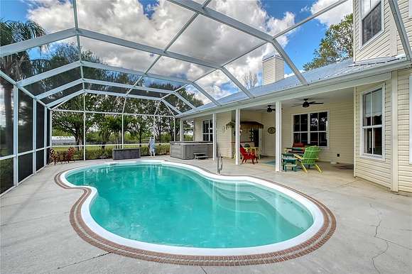 Under contract-accepting backup offers. Discover the ultimate horse property, whether you are an avid rider looking to keep your horses at home, dreaming of running your own boarding facility, or envisioning new creative uses for a versatile barn. This 9.41-acre estate offers all the essential elements: flat, cleared, and spacious land with fencing and cross-fencing, creating a safe and inviting environment for both family and animals. Nestled within this peaceful setting is a custom-built 4-bedroom, 3-bath, 2-story home that blends comfort with nature. A brand-new (2025) metal roof ensures peace of mind. The main floor boasts a chef-inspired kitchen with center island, stainless appliances, abundant counter space, and storage. Cozy up by the wood-burning fireplace on chilly evenings or enjoy views of the pool and hot tub. The owner's suite on the first floor is filled with natural light and features a deluxe en-suite with jetted tub, walk-in shower, and dual sinks, plus a generous walk-in closet. A second bedroom on the main level provides flexibility for guests or a private office. Upstairs, a spacious loft doubles as a game or movie room, along with two large bedrooms and a full bath. Outdoor living shines here with an enclosed pool deck and covered entertaining spaces. The oversized detached barn features 8 stalls, tack room, wash area, storage room, excellent ventilation, and water and electricity to all stalls. Five separate pastures, two with direct stall paddocks, and an additional shelter building with water sources ensure comfort and convenience for your horses. Numerous nearby riding trails enhance the equestrian lifestyle. The barn's concrete flooring makes this property especially versatile. As it stands, it's a premier equestrian setup with income potential: Full Boarding @ $1,100/month, Partial Boarding @ $650/month, Self-Boarding @ $450/month. Alternatively, the barn offers exciting and unique possibilities as a BARNDOMINIUM (Barndos) conversion--transforming into a full residential living space, adding a second-level apartment, or remodeling into a classic car storage / garage (see attached floor plans). With acreage supporting two homes, this property allows flexible living and working solutions. Picture mornings as the sun rises over your land, relaxing by the stocked pond, or fishing from the rebuilt bridge that leads to your private island, complete with bonfire space for memorable gatherings. Just outside Panther Ridge, you'll enjoy the best of both worlds--close to shopping, schools, and medical facilities, yet far enough to savor privacy and tranquility with no HOA fees or Deed Restrictions. Just 15 minutes to I-75, it's an ideal location for your equestrian lifestyle. Don't miss out--saddle up and make this dream property your own!
