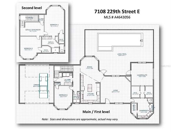 - Bathroom x 3, Bedroom x 4, Bonus Room, Dining Room, Kitchen, Laundry, Living Room