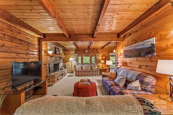 Welcome to your mountain retreat! This beautifully maintained 2/3 BR, 3.5 BA log cabin home offers sweeping views of Grandfather Mountain and is nestled on 1.97 acres near the top of Gingercake Mountain. Located just three miles from the iconic Blue Ridge Parkway, the Gingercake Acres neighborhood borders Pisgah National Forest and the rugged and scenic Linville Gorge Wilderness Area-perfect for nature lovers and outdoor enthusiasts. Enjoy the outdoors and amazing mountain views from the comfort of your deck or relax in the expansive screened-in porch-ideal for morning coffee, afternoon naps or entertaining guests. Inside, the main level features a spacious, modern kitchen, an open-concept living, dining, and library area, and a serene primary suite with a private bath. Upstairs, you'll find two generously sized bedrooms, each with its own full en-suite bathroom-ideal for guests or family. High-speed Spectrum internet ensures you stay connected while enjoying peaceful mountain living. The full basement includes a laundry, additional shower, workshop, storage, and access to a single-car garage. As a resident of Gingercake Acres, you'll also enjoy access to the recently updated clubhouse and swimming pool, tennis and pickleball courts. With nearby towns like Banner Elk, Boone, and Morganton just a short drive away, this home offers the perfect blend of views, tranquil seclusion and convenient access to dining, shopping, and year-round recreation. Offered fully furnished, this home is move-in ready-just bring your suitcase and start enjoying the mountain lifestyle.