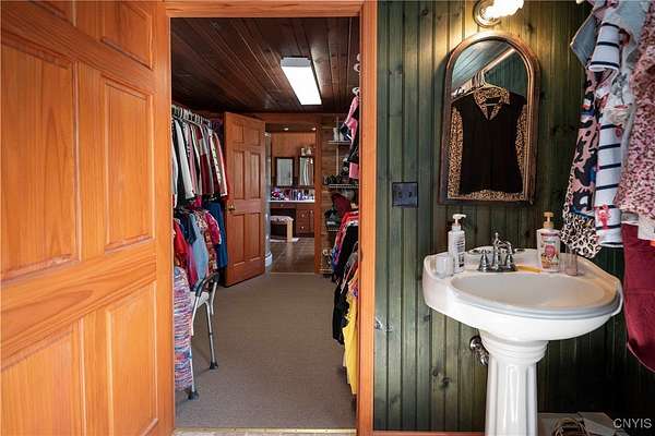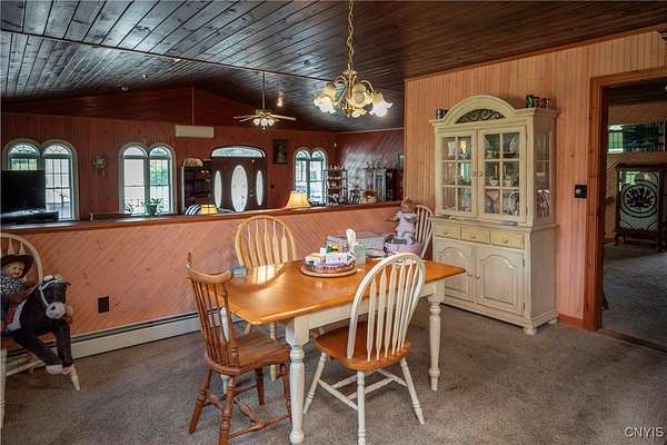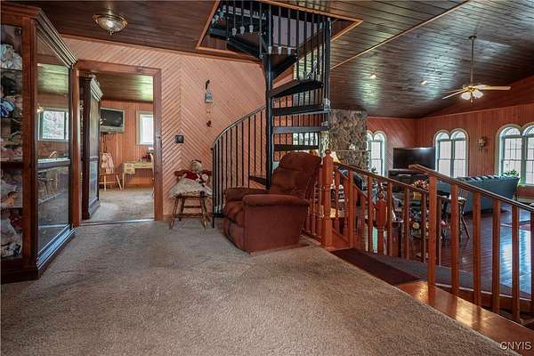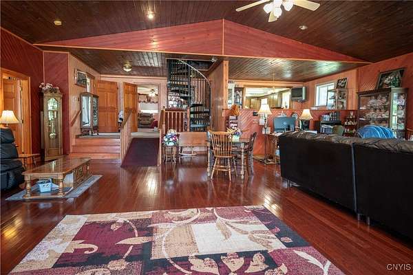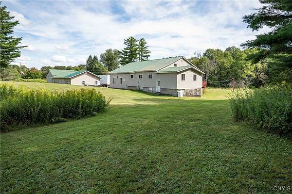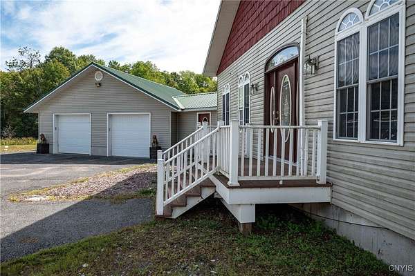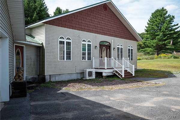 Country Living Meets Business Flexibility-Spacious and versatile, this almost 13 acre property offers both a comfortable residence and extensive outbuildings for hobby, storage, or business use. The main home features a dramatic great room addition with vaulted wood ceilings, arched windows, and a floor-to-ceiling stone gas fireplace as its centerpiece. The kitchen offers plenty of counter space and opens to the dining area for easy entertaining. The first floor includes a large master ensuite with a walk-through closet and spa-style bath featuring a jetted tub and separate shower. An office, laundry with half bath, and two additional bedrooms complete the main level. A spiral staircase leads to four more bedrooms upstairs, providing plenty of room for family, guests, or flexible use. Outdoors, the property shines with an attached garage plus a massive detached 4-stall shop. The shop includes concrete floors, attic storage, sorting and redemption rooms, and multiple overhead doors - ideal for small business, equipment, or recreational storage. The grounds are open, level, and private, creating space for work and play in a country setting. The remaining acreage is across the road from the shop, and could be used for extra buildings and parking. This unique property is designed to accommodate a variety of lifestyles, from large family living to home business or hobby pursuits. Directly off NYS Rt 12, with easy access to points North and South. Access to the main snowmobile and ATV trails, with plenty of room to store all of your toys! This property offers the perfect blend of lifestyle and opportunity!