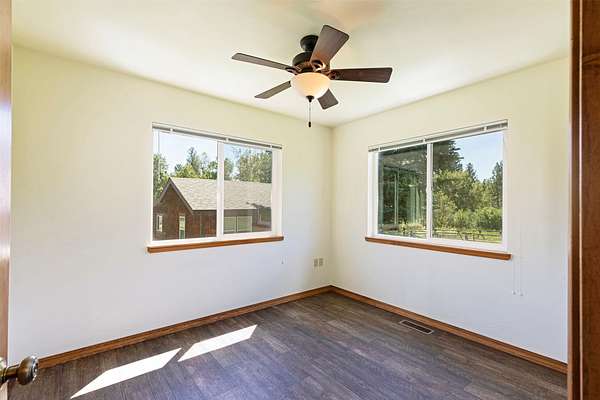 From Highway 93 turn west onto Bear Creek Croad, follow Bear Creek Road for 2.3 miles, turn south onto Red Crow Road and follow for 1.5 miles, continue west to the intersection of Red Crow Road and Fred Burr Road. Continue west on Fred Burr Road for 0.5 mile, property is on the left hand side of the road.