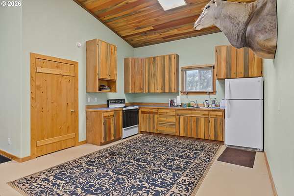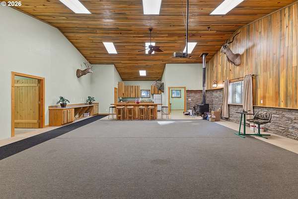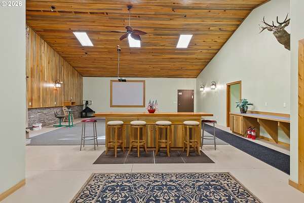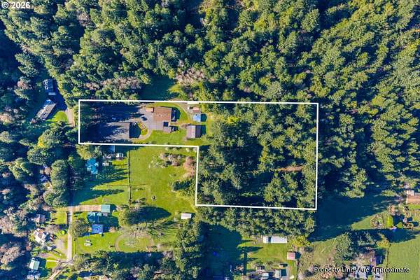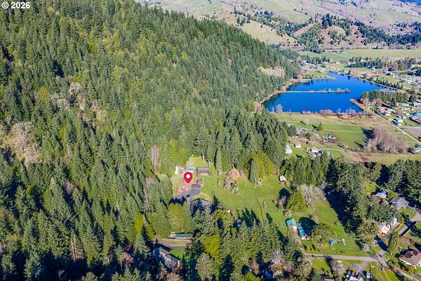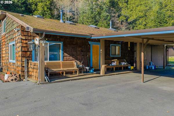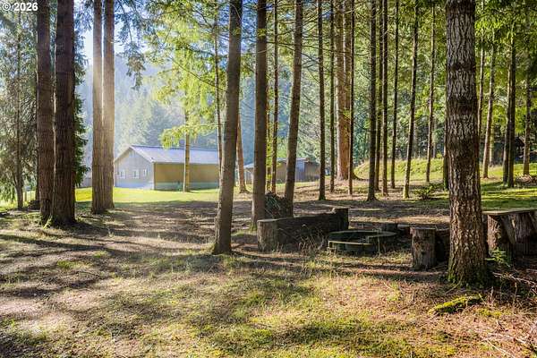 Truly one-of-a-kind estate set on 4.07 acres. This property blends craftsmanship, functionality, and natural beauty, offering a rare opportunity for a peaceful rural lifestyle. The 3 bedroom/1 bathroom home offers approximately 1,200 sq.ft. of comfortable living space. The property features an impressive collection of thoughtfully designed outbuildings and amenities. At the heart of the estate is a 50 x 100 custom shop with multiple dedicated workspaces, custom wood detailing, abundant natural light from skylights, and a large roll-up door. The shop includes two bathrooms, a kitchen area, private office, and a trophy display room. Upstairs offers 840 square feet of finished, carpeted storage, and a secure two-story vault room. An air compressor shed supplies integrated air lines throughout the shop. A 30 x 40 woodshop building complements the main shop and includes a guest bedroom, bathroom, loft space, and private exercise room-ideal for guests, creative pursuits, or expanded work-from-home options. Additional improvements include a large tractor shed, bike storage shed, garden shed, and propane tank shed. The grounds unfold into a park-like retreat with tranquil woodlands, a custom firepit area, and space to relax while enjoying sunsets and nature. Established fruit orchards include apples, pears, cherries, and plums. Four fully serviced RV sites with water and power add versatility for guests. This property offers an ideal setup for a home-based business, hobby operation, or multi-use estate, while also providing room to grow, explore, and enjoy a quieter lifestyle away from urban congestion. Located in the charming community of Powers, known for its forests, rivers, and outdoor recreation, this is a rare opportunity to enjoy privacy, space, and flexibility in a truly special setting.