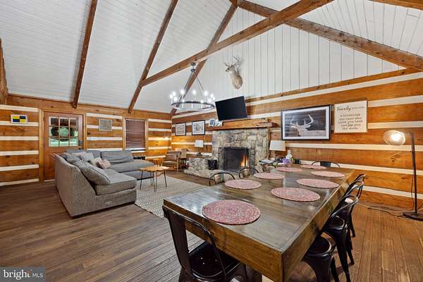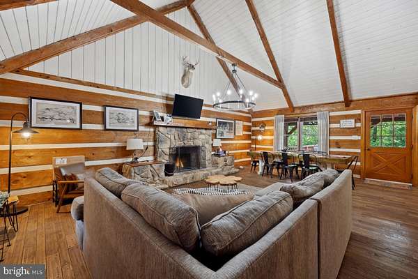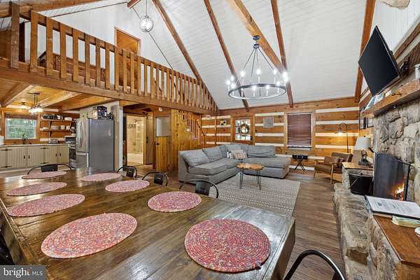 Discover this one-of-a-kind log cabin retreat nestled right on the Shenandoah River and surrounded by majestic mountains. With five bedrooms, apark-like backyard, and easy access to a calm stretch of water, this property offers the perfect blend of relaxation and adventure. Located just 1.5 hours from DC, andminutes from Seven Bends State Park an the quaint dining options of Woodstock, the cabin is both convenient yet private. Inside, you'll find authentic log construction--both interior and exterior creating a warm rustic atmosphere. A stone woodburning fireplace anchors the living area, adding comfort and charm during every season.The main level features primary bedroom plus lofted bunk room with two full bathrooms off the living area. The lower level offers three additional bedrooms, a fullbathroom, a second living space and walk-out access to the backyard. Step outside to enjoy a concrete patio, hot tub, and plentiful parking, perfect for entertaining orunwinding after a day on the river. Currently operating as a successful short term rental for several years, this property is equally suited as a private getaway, familyretreat, or income producing investment.